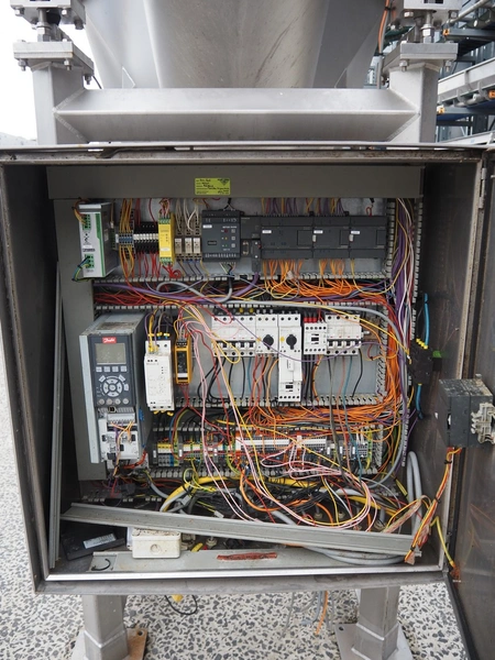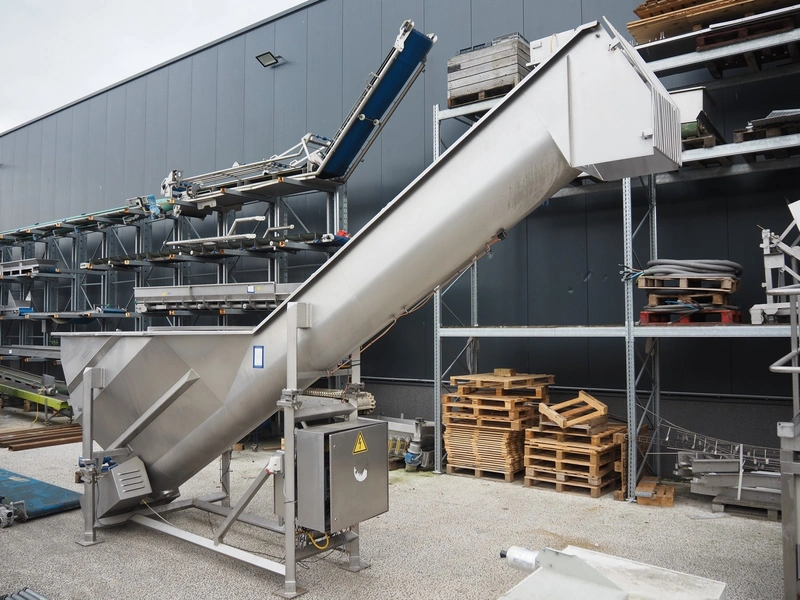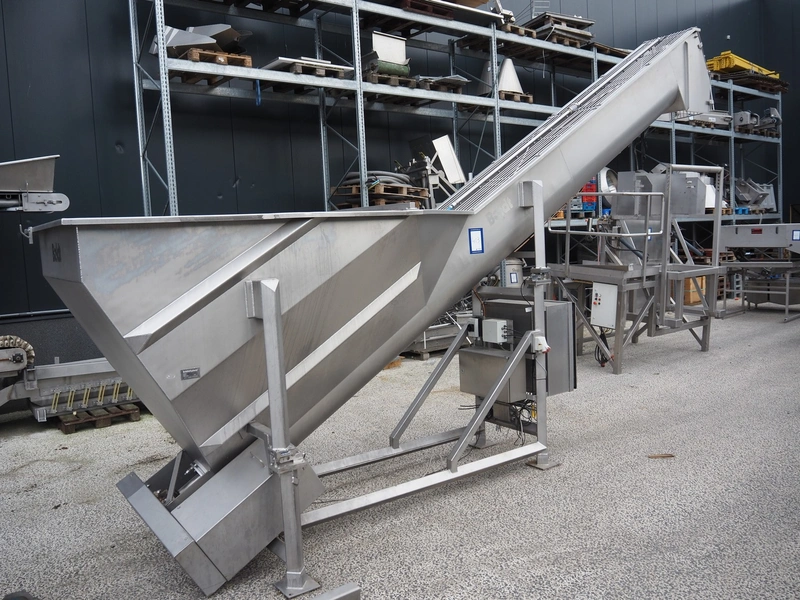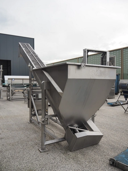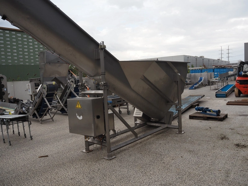 Boldt Systems elevating screw on weighing cells, elevating height: 3100 mm, total dimensions: 6500 mm x 1800 mm x 4000 mm.