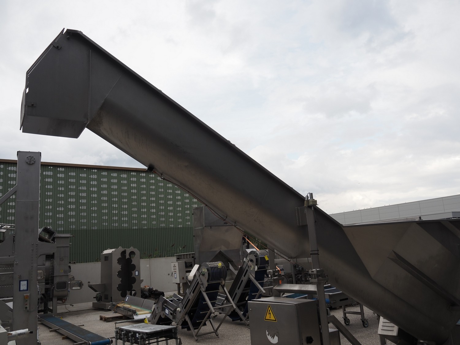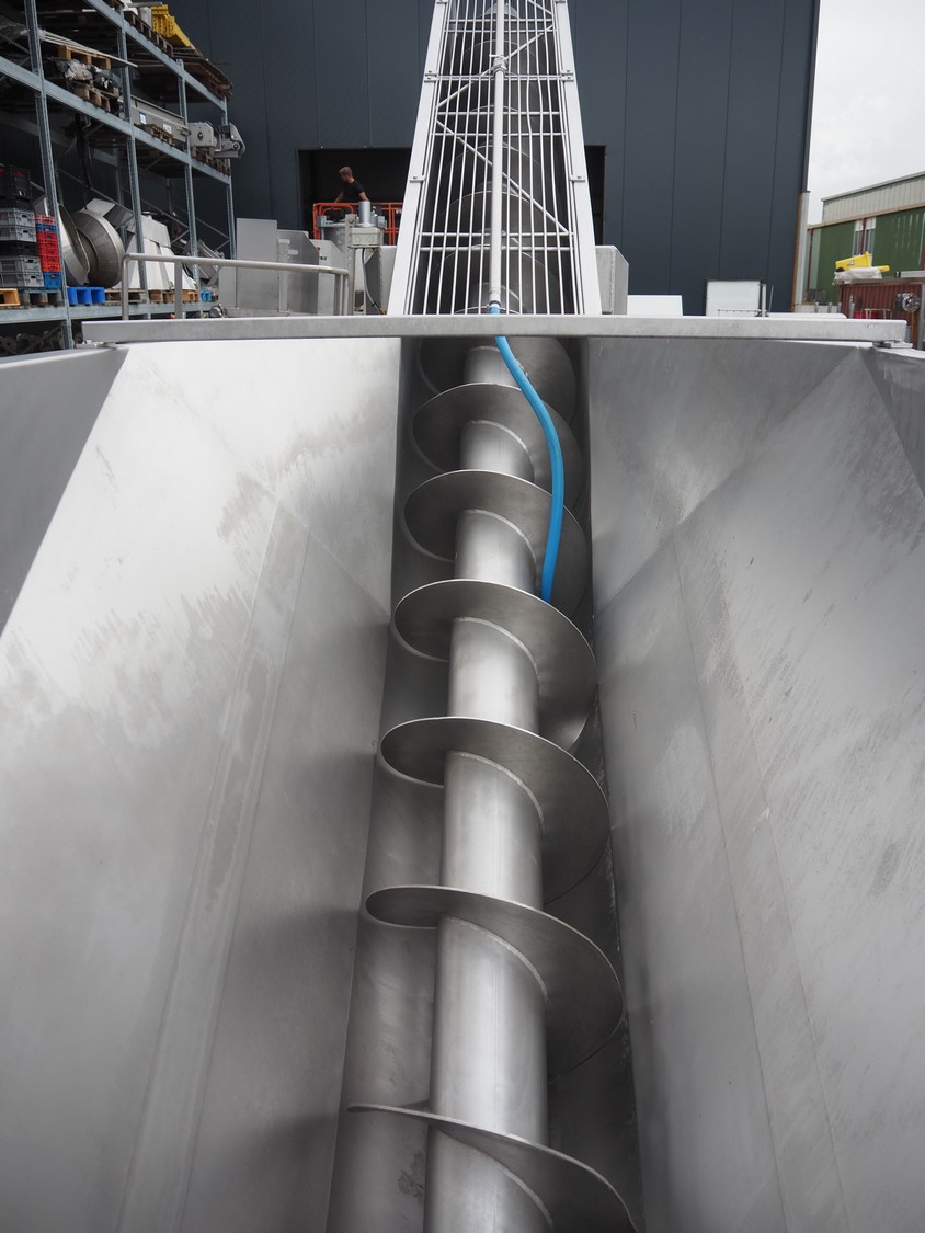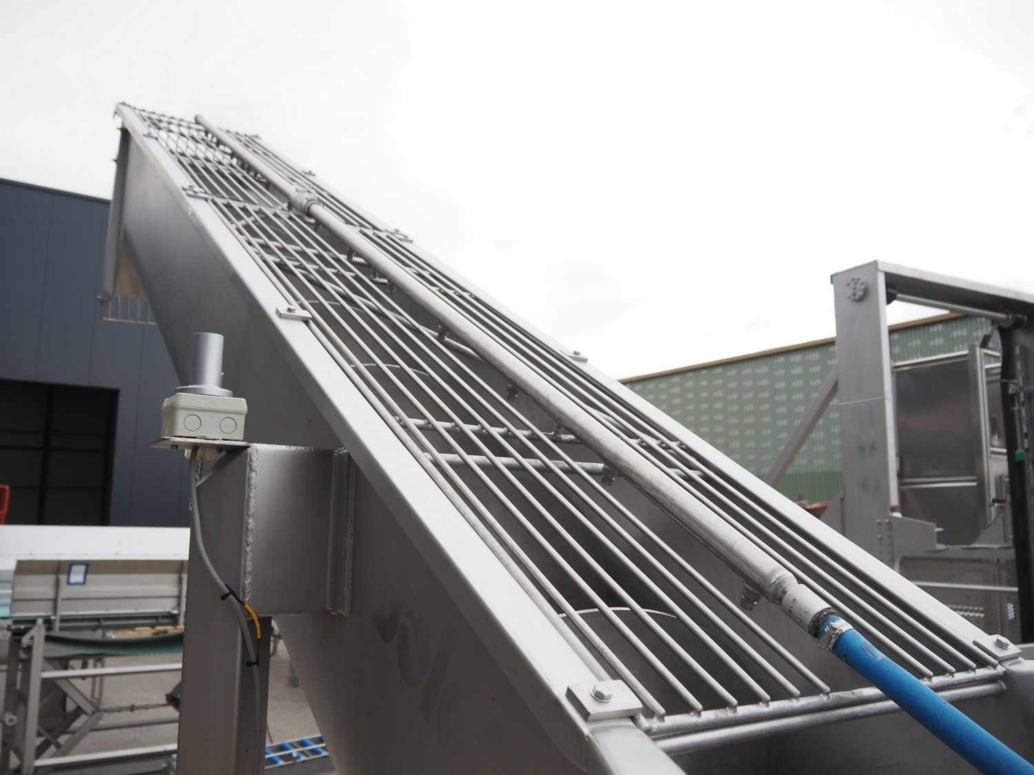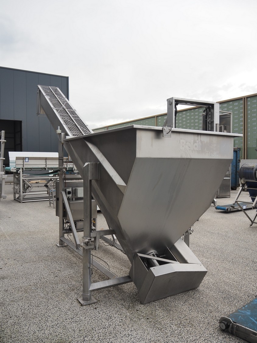 Boldt Systems elevating screw on weighing cells, elevating height: 3100 mm, total dimensions: 6500 mm x 1800 mm x 4000 mm.