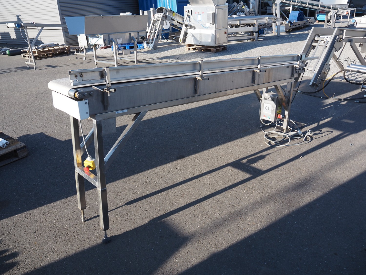 Elevating belt, s/s frame, plastic belt, belt width: 300 mm, elevating height: 1100 mm, total dimensions:3150 mm x 500 mm x 1100 mm.