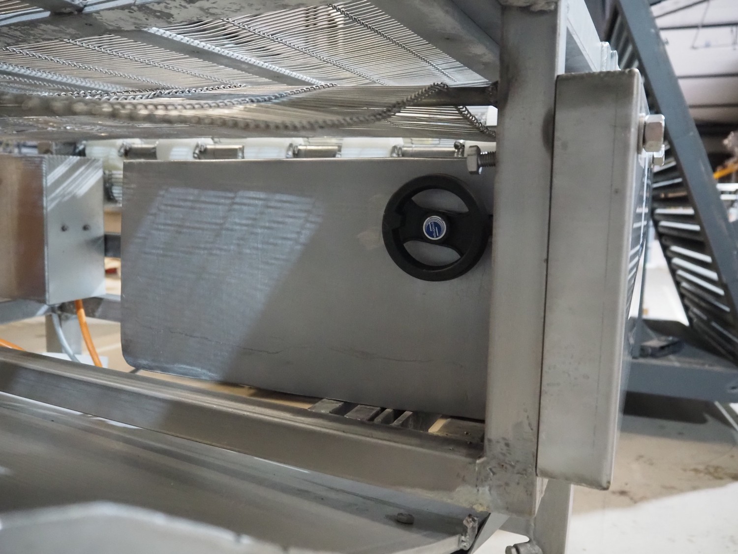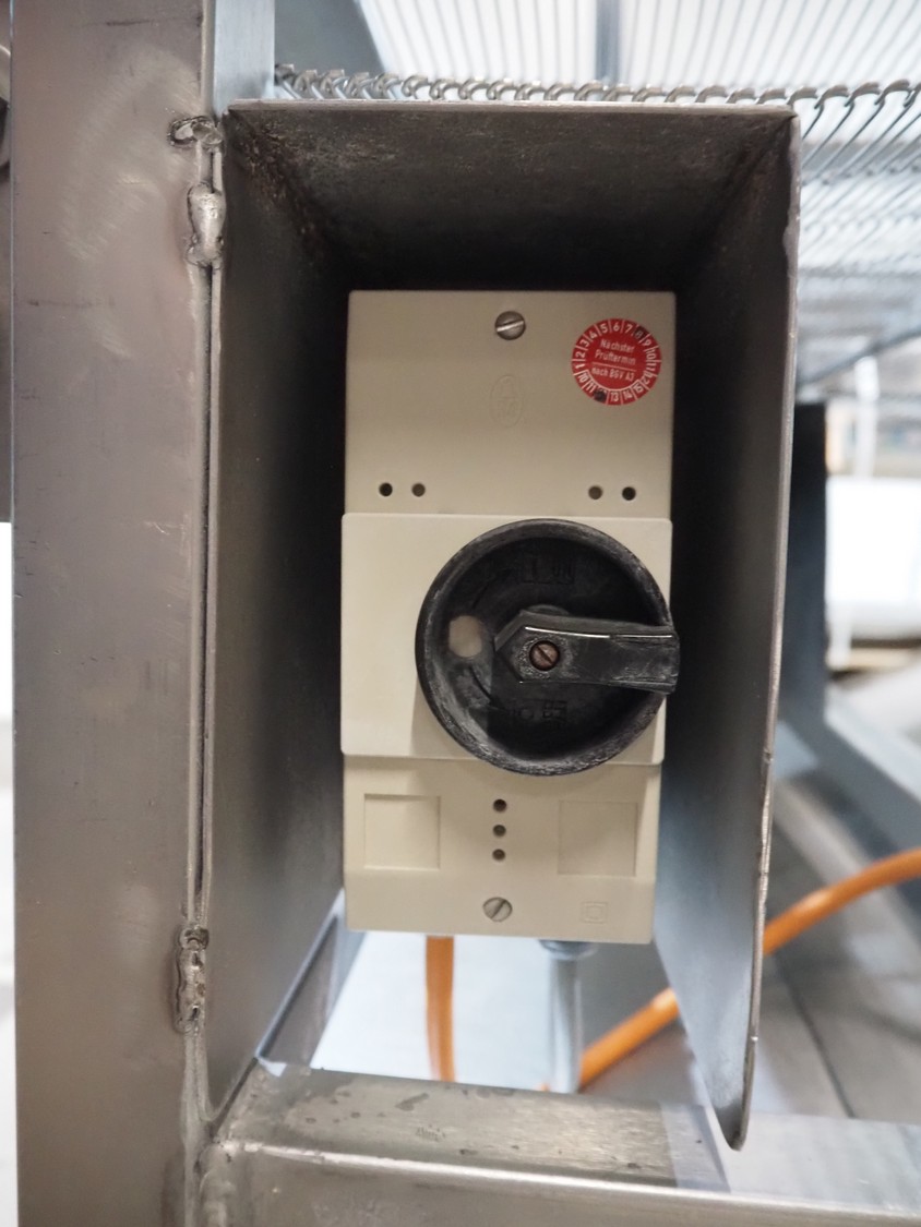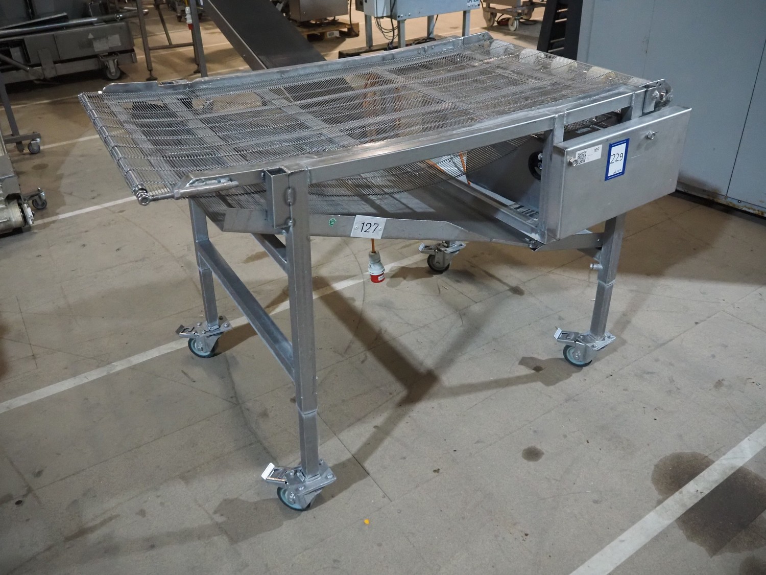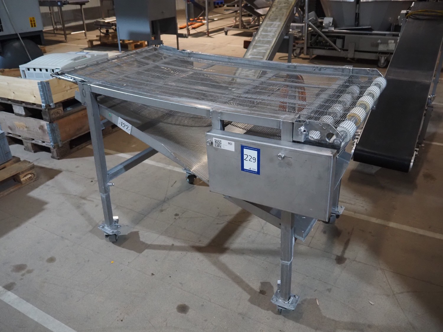Mobile mesh belt, s/s frame, belt width: 700 mm, total dimensions: 1450 mm x 880 mm x 950 mm.
