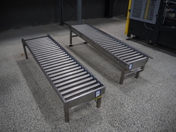2 roller conveyors, s/s frame, s/s rollers, roller width: 480 mm, total dimensions: 2000 mm x 570 mm x 380 mm.12 bidsLot is closed -