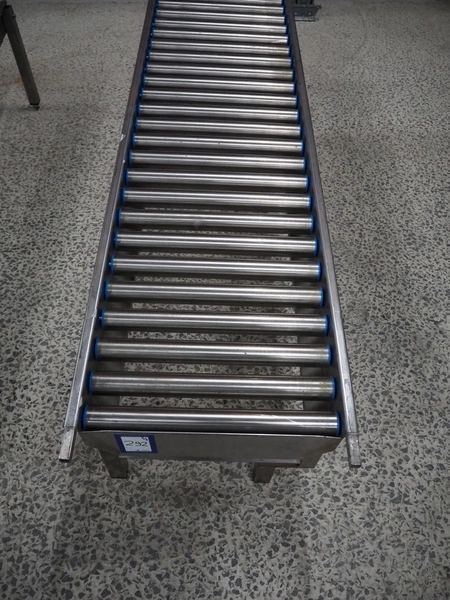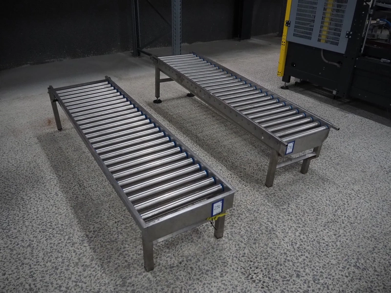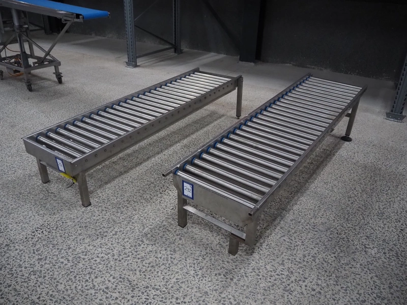 2 roller conveyors, s/s frame, s/s rollers, roller width: 480 mm, total dimensions: 2000 mm x 570 mm x 380 mm.