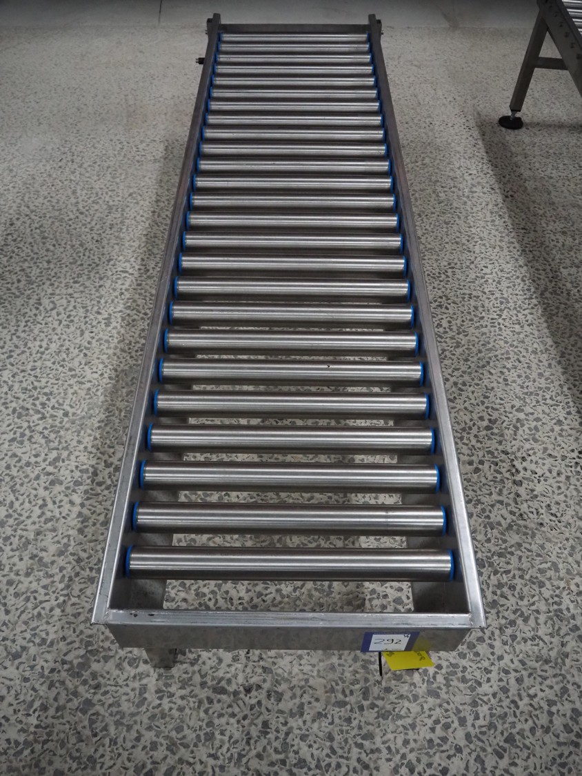 2 roller conveyors, s/s frame, s/s rollers, roller width: 480 mm, total dimensions: 2000 mm x 570 mm x 380 mm.