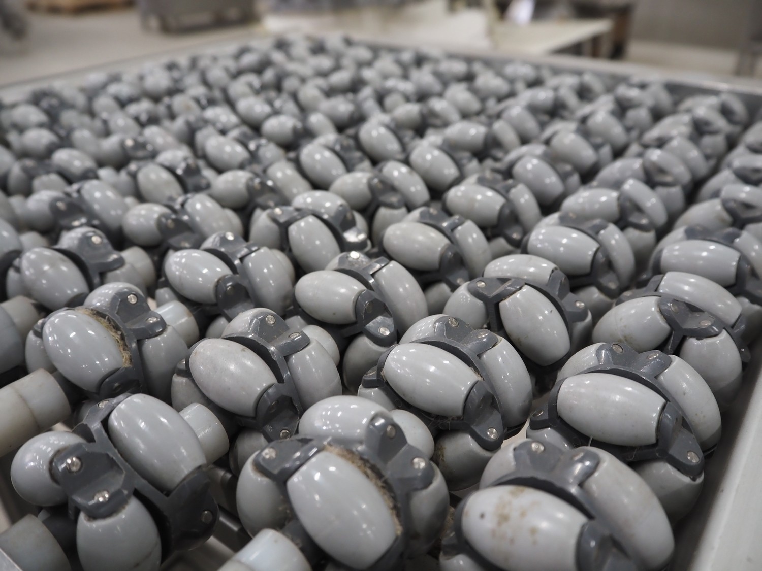 Roller conveyor, s/s frame, plastic rollers, roller width: 500 mm, total dimensions: 800 mm x 600 mm x 850 mm.
