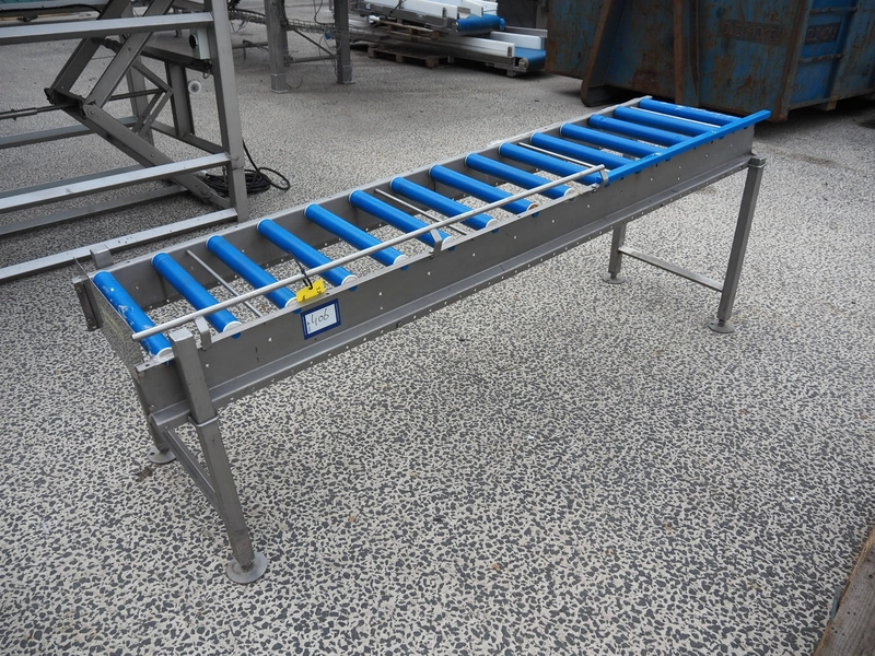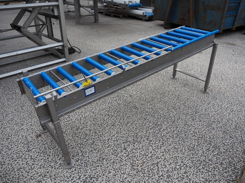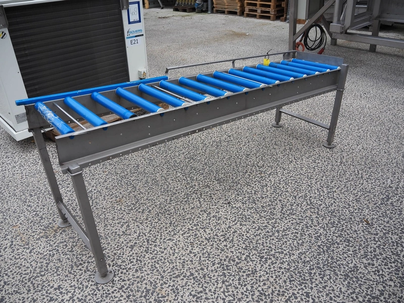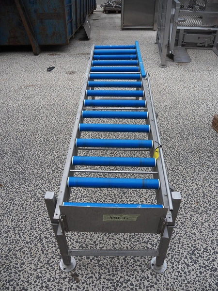 Roller conveyor, s/s frame, plastic rollers, roller width: 450 mm, total dimensions: 2250 mm x 600 mm x 850 mm.