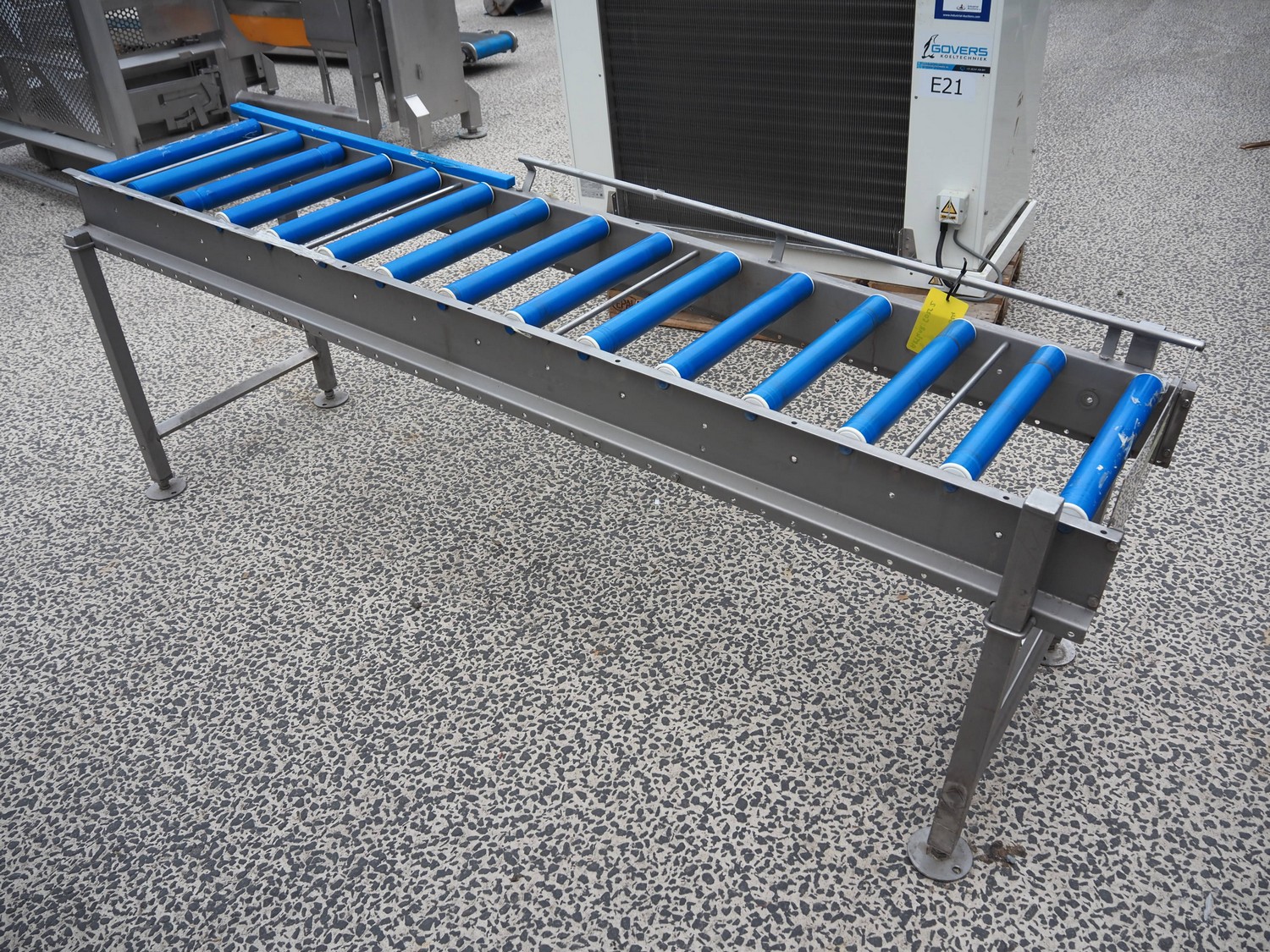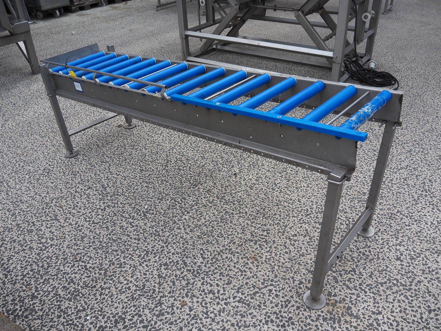 Roller conveyor, s/s frame, plastic rollers, roller width: 450 mm, total dimensions: 2250 mm x 600 mm x 850 mm.