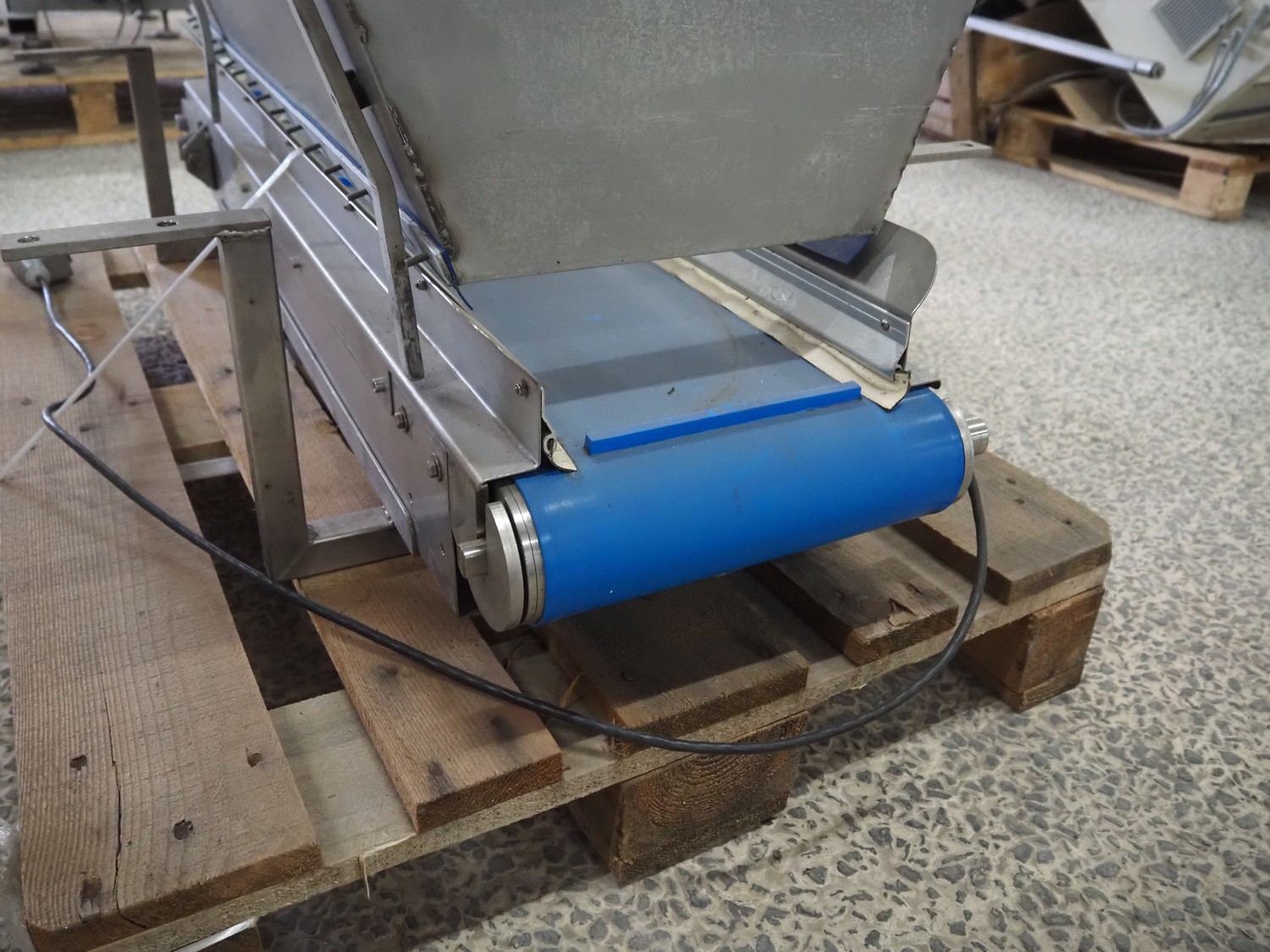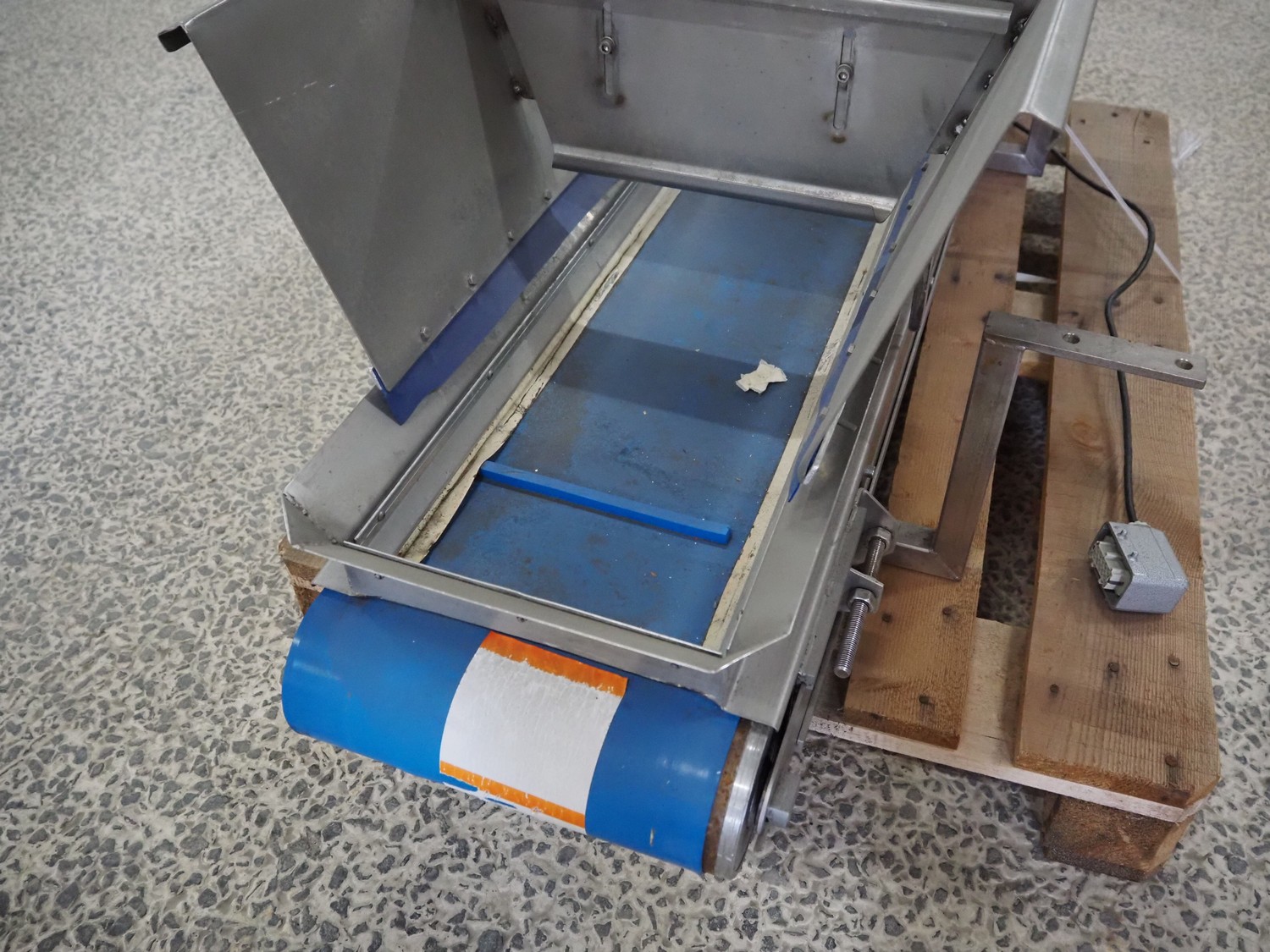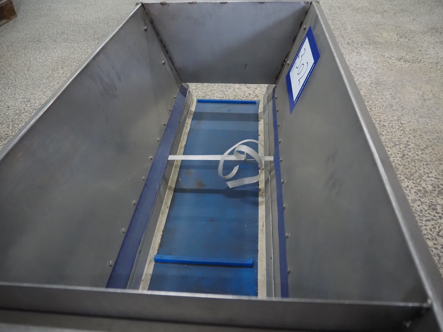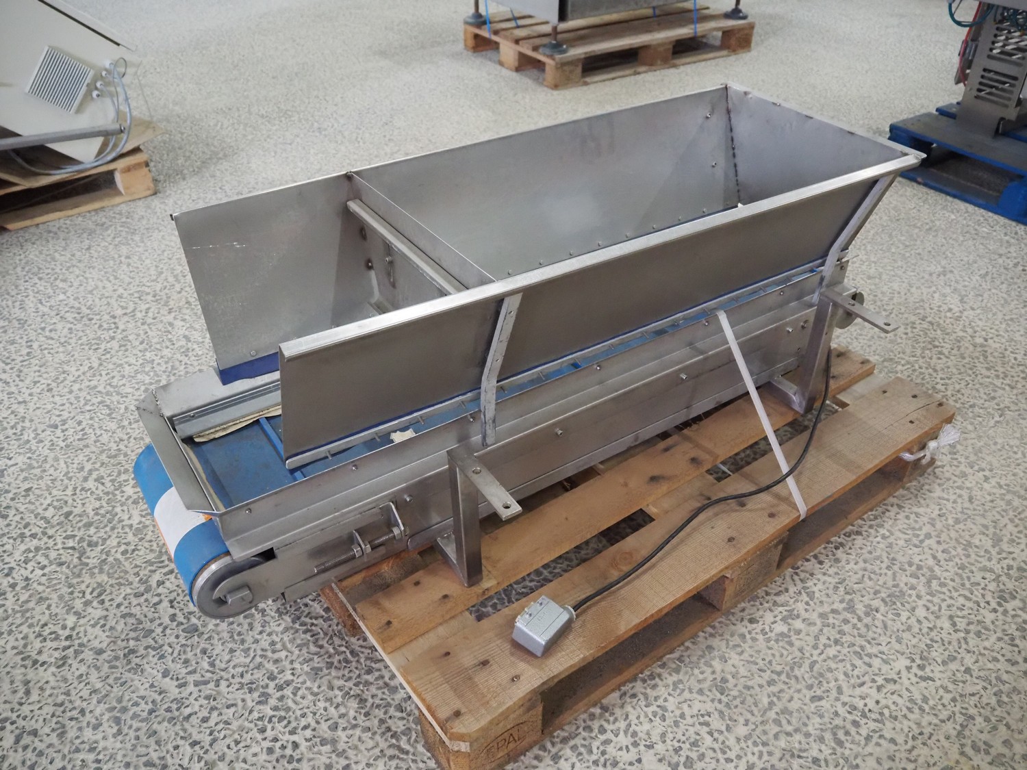 Transport belt, s/s frame, plastic belt, belt width: 290 mm, total dimensions: 1500 mm x 600 mm x 500 mm.