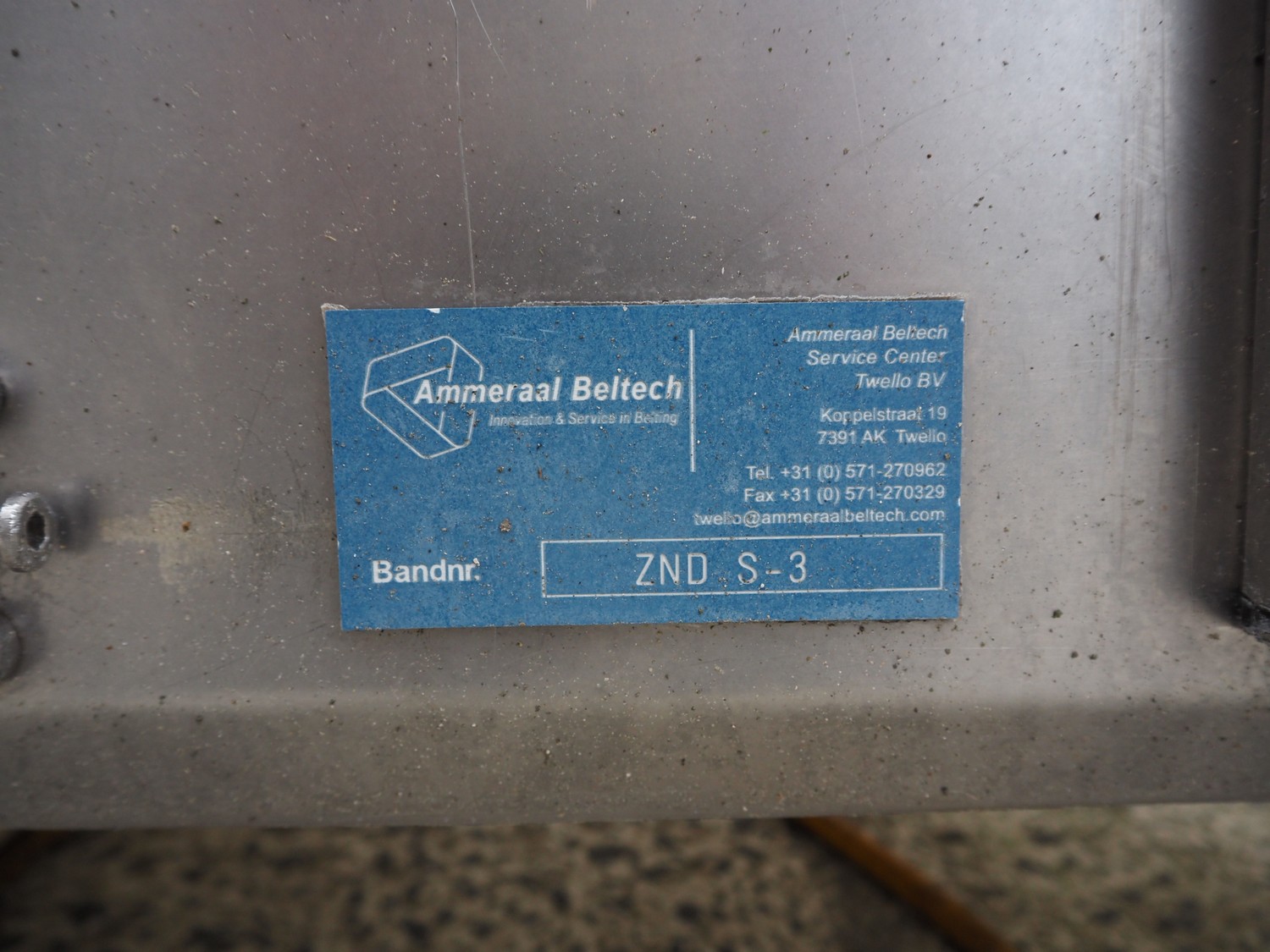 Ammeraal Beltech transport belt, s/s frame, number: ZND S-3, plastic belt, belt width: 500 mm, total dimensions: 7900 mm x 800 mm x 600 mm.