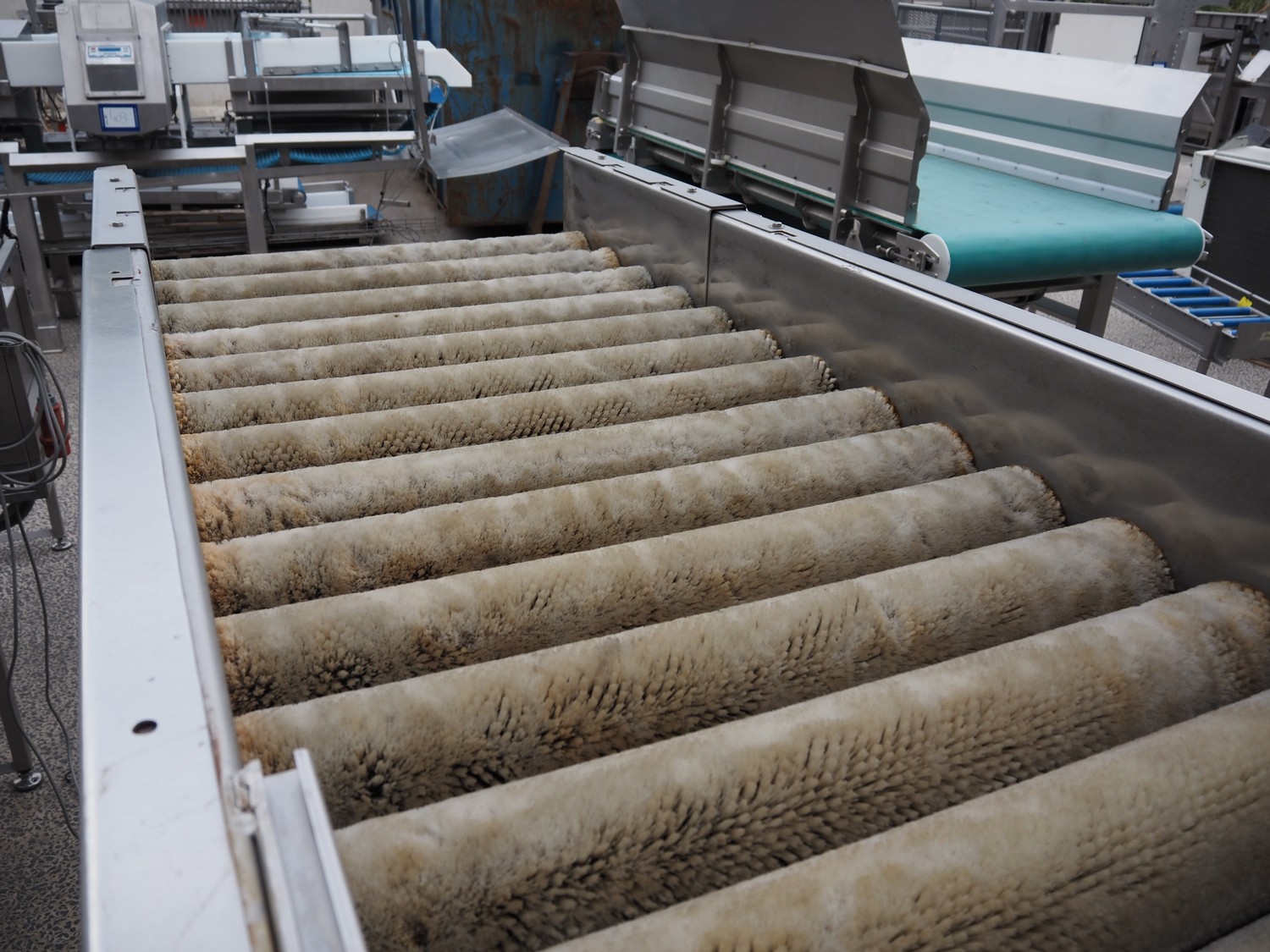 Burg's Machinefabriek brush belt, s/s frame, brush width: 800 mm, total dimensions: 2170 mm x 1060 mm x 1850 mm.
