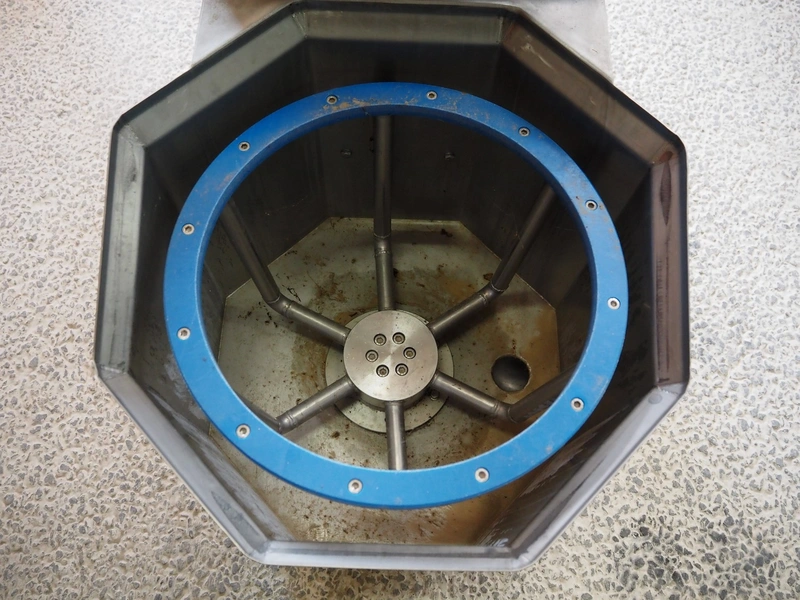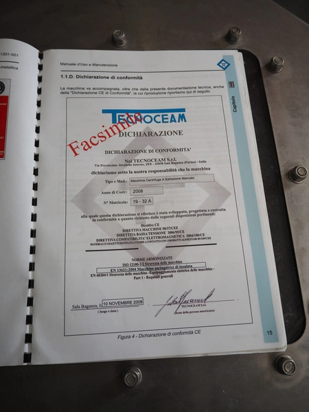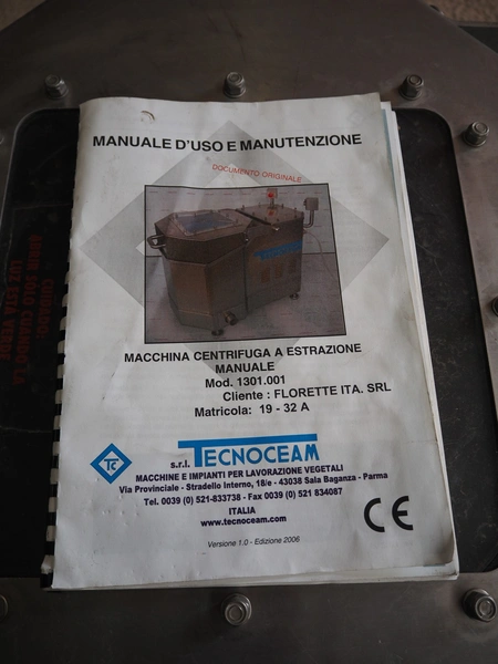 Technoceam vegetable centrifuge, type: centrifuga manuale, inside dimensions: Ø 420 mm x 300 m, total dimensions: 1100 mm x 600 mm x 800 mm.