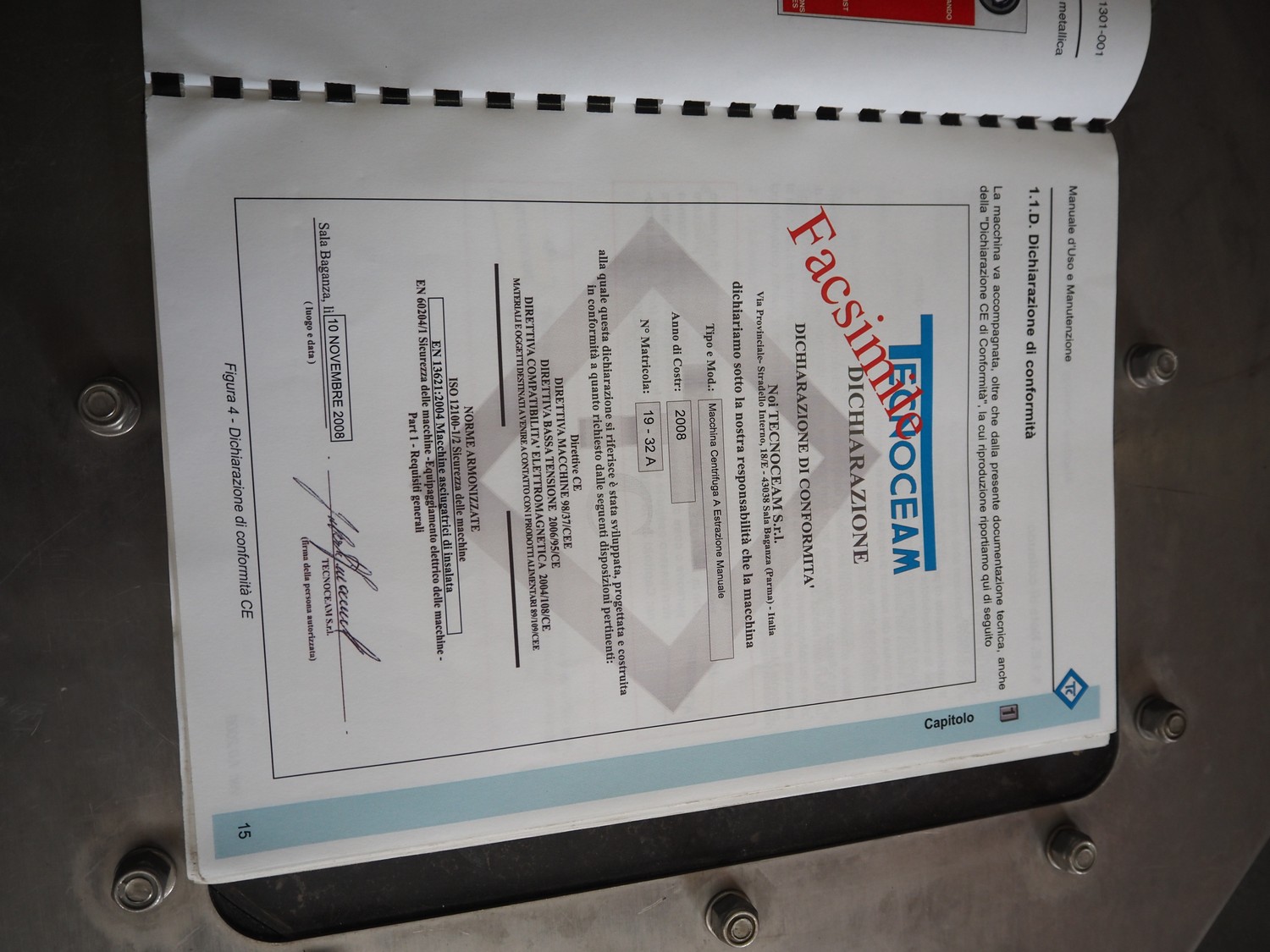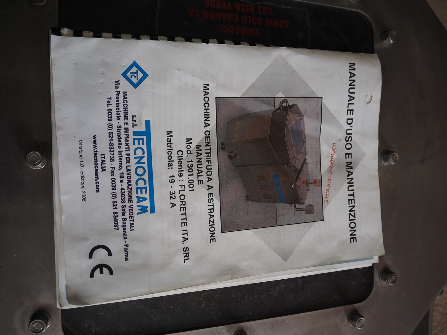 Technoceam vegetable centrifuge, type: centrifuga manuale, inside dimensions: Ø 420 mm x 300 m, total dimensions: 1100 mm x 600 mm x 800 mm.