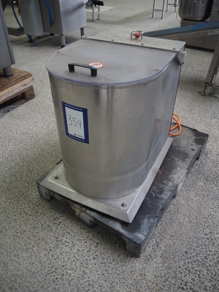 Eillert vegetable centrifuge, model: CHIN, number: 877, year of construction: 2010-14, 400 V, 3 Ph, 2.1 A, 0.75 kW, inside dimensions: Ø 450 mm x 350 mm, total dimensions: 800 mm x 600 mm x 930 mm. Technical condition unknown.