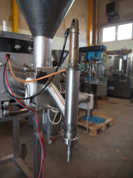 Orbut s/s pneumatic filling machine, serial number: NMD608988, dosing range: 0-540 ml , foot control, dimensions: 1200 mm x 650 mm x 1250 mm.