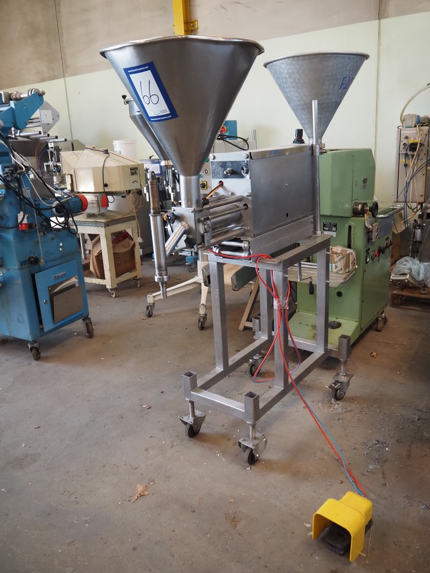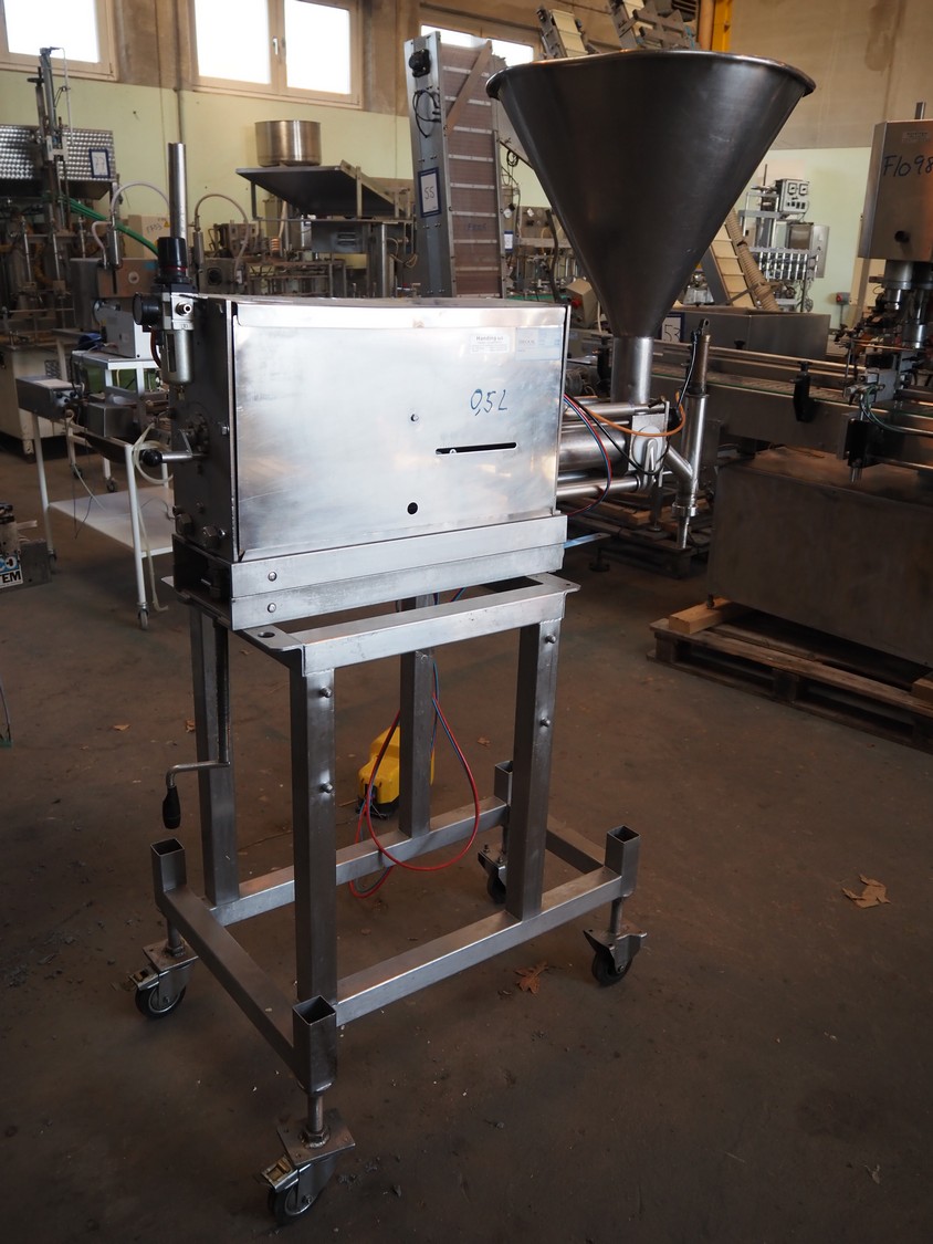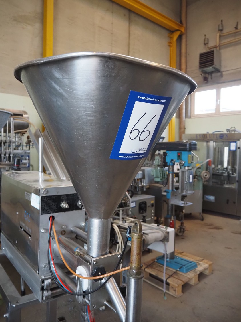 Orbut s/s pneumatic filling machine, serial number: NMD608988, dosing range: 0-540 ml , foot control, dimensions: 1200 mm x 650 mm x 1250 mm.