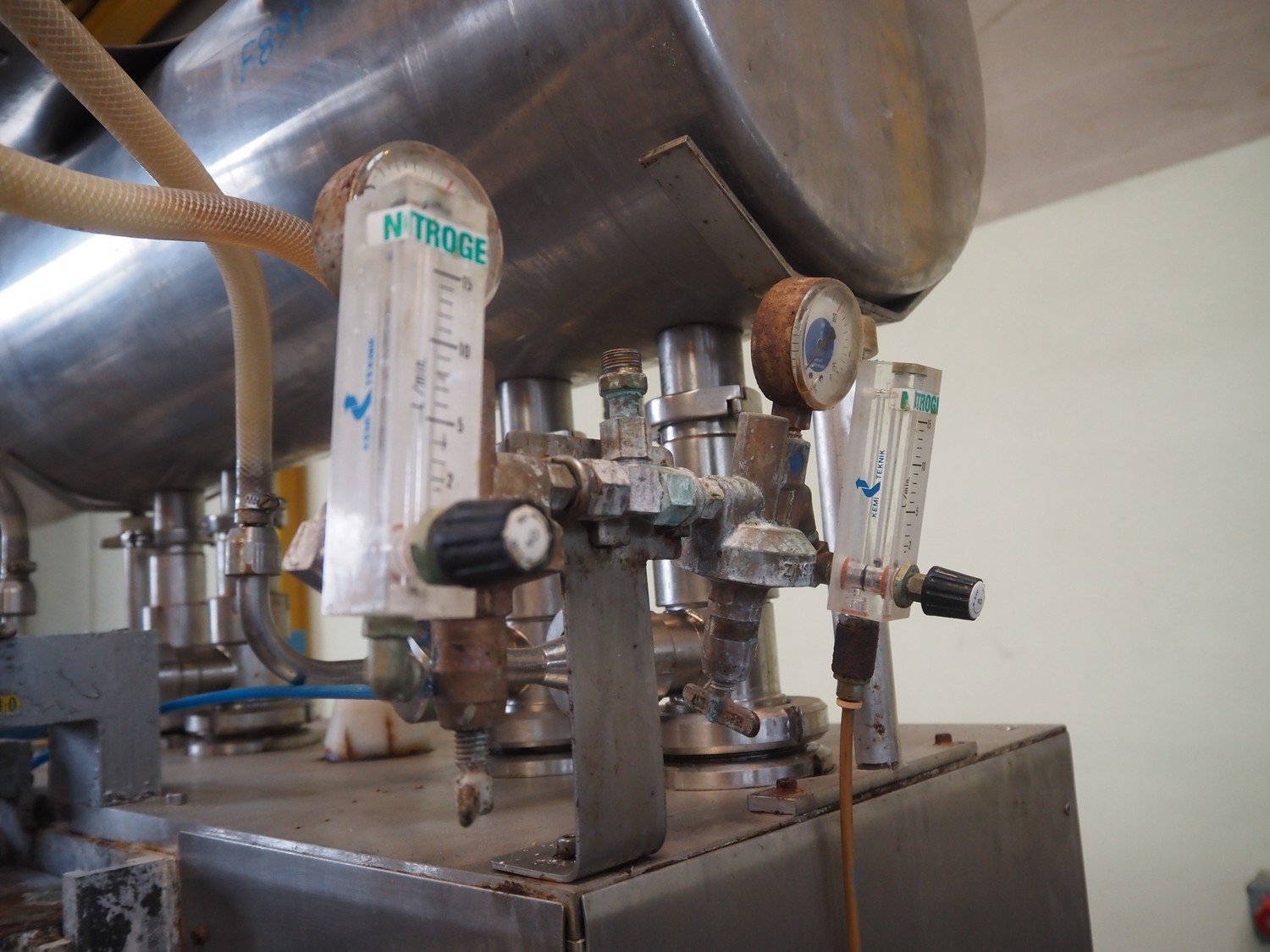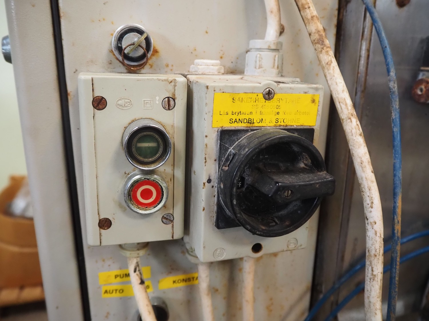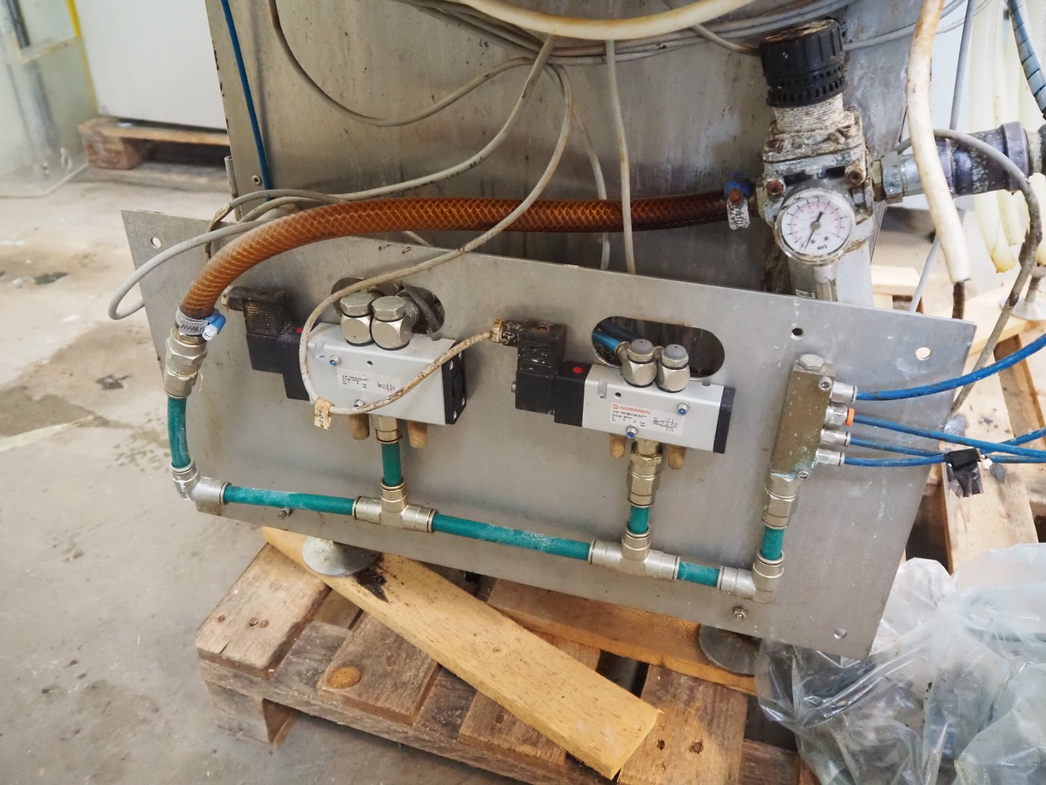 Minab s/s filling machine, 380 V, 4 filling heads, nozzle diameter: Ø 18 mm, total dimensions: 1250 mm x 950 mm x 2100 mm.