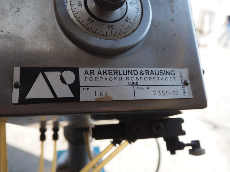 AB Åkerlund & Rausing pneumatic s/s filling machine, type: LKF, serial number: 2351-12, dosage: 0-1000 ml, dimensions: 900 mm x 450 mm x 1850 mm.