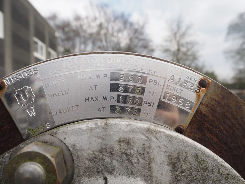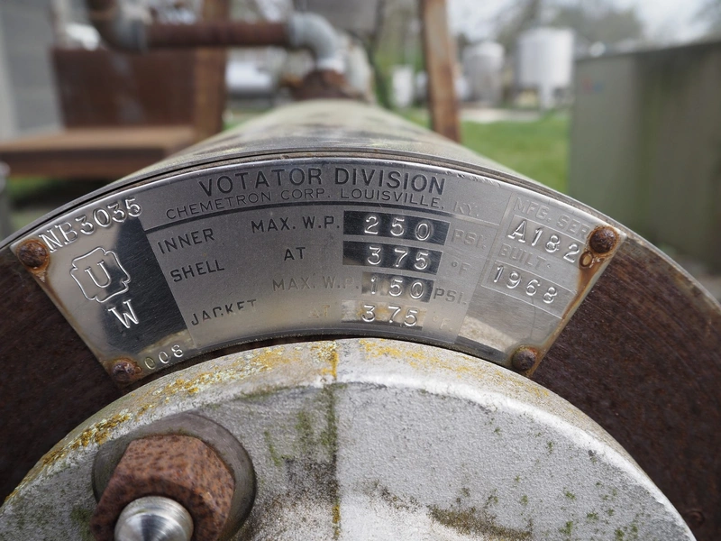 Votator s/s scraped surface heat exchangers, type: 1C624L, serial number: 70-130 V2, year of construction: 1968, 230/400 V, total dimensions: 2650 mm x 1150 mm x 2150 mm.