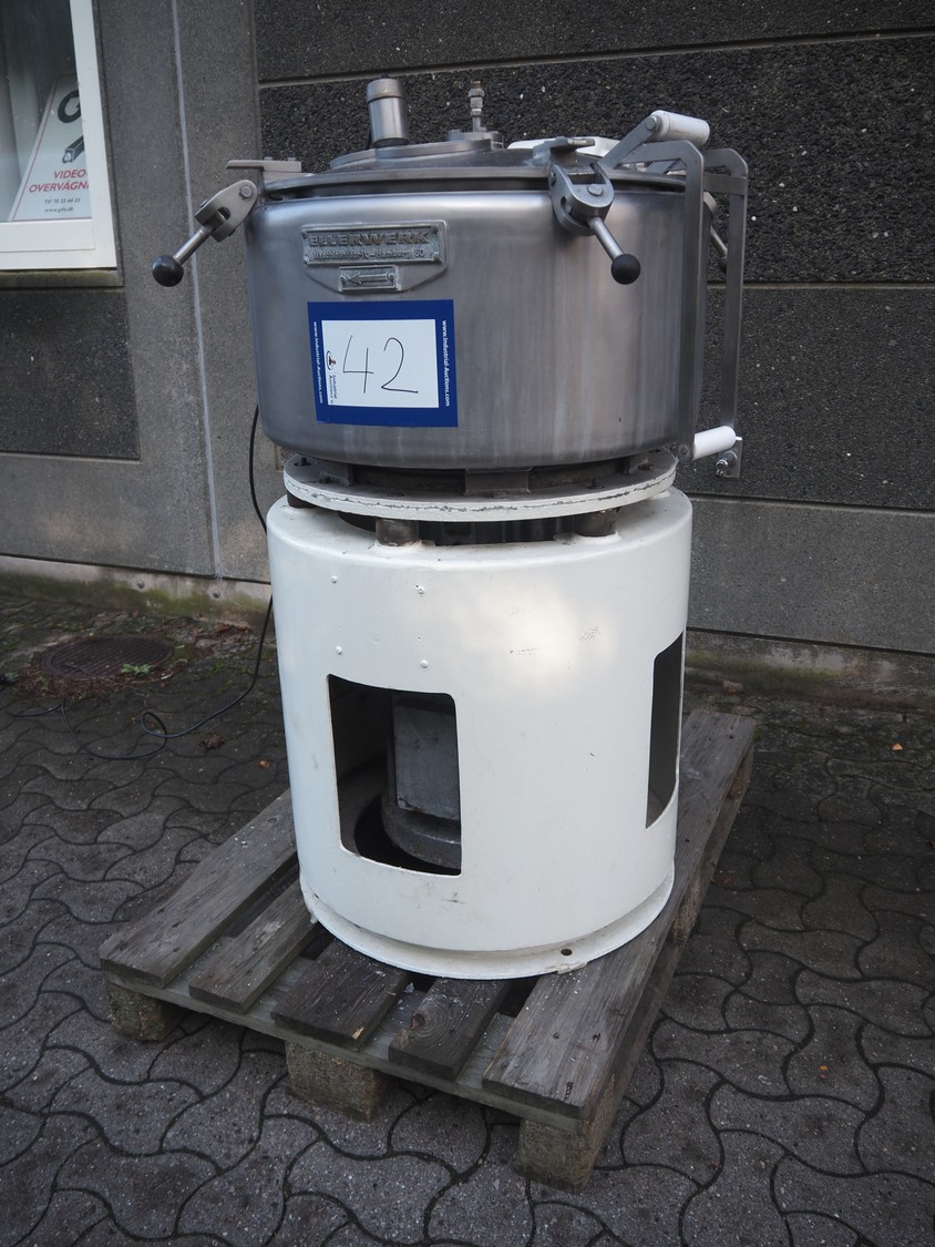 Ellerwerk separator, drum dimensions: Ø 500 mm x 200 mm, perforations diameter: Ø 10, total dimensions: 800 mm x 700 mm x 1300 mm. Motor needs renovation.
