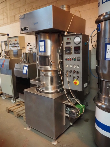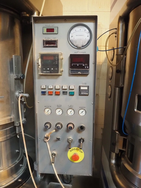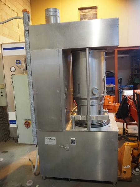 Niro coater / fluid bed, type: CC2 P/T, number: 0013, spray function 20 liter product container, dimensions: 1400 mm x 1100 mm x 2200 mm.