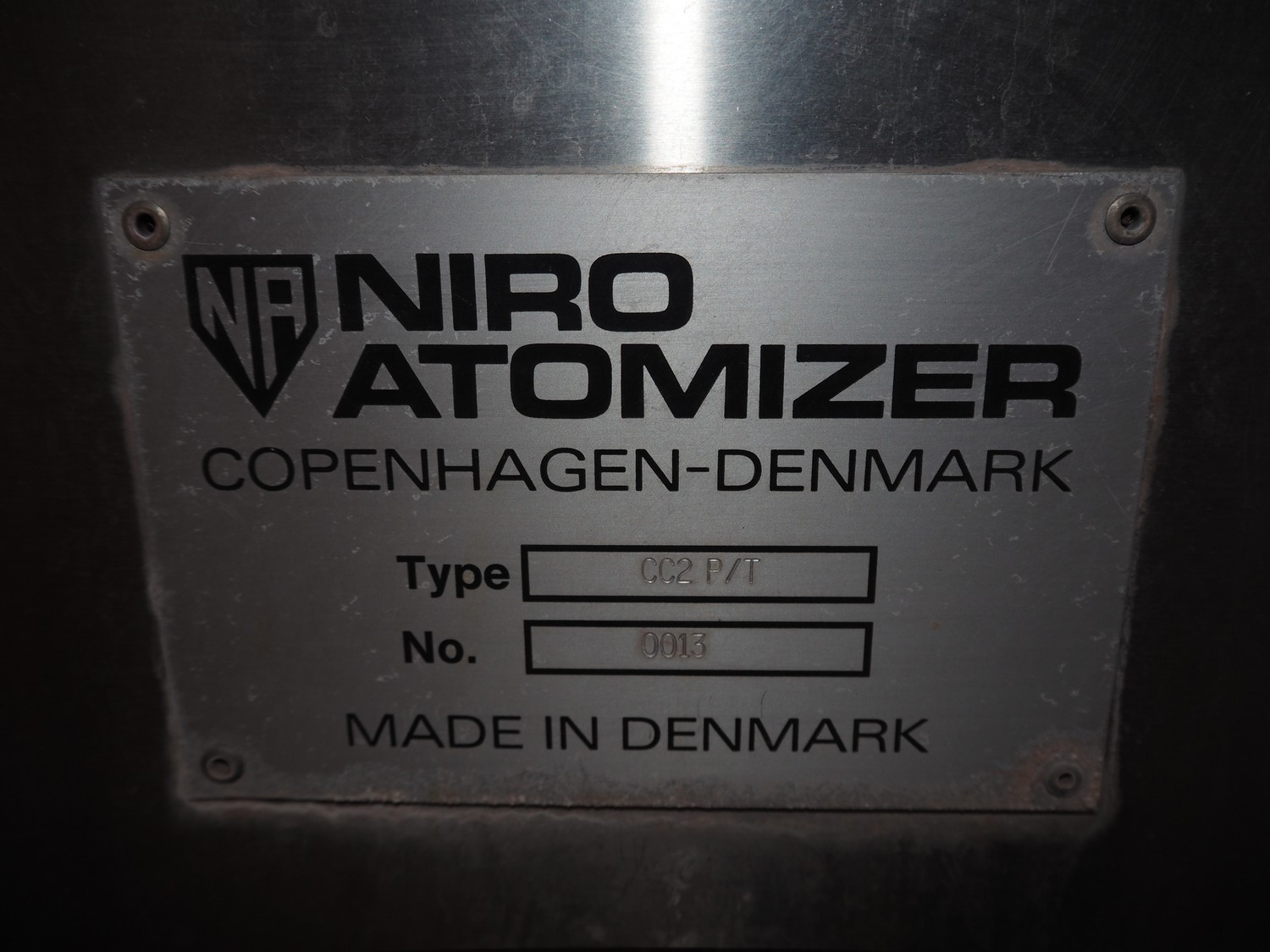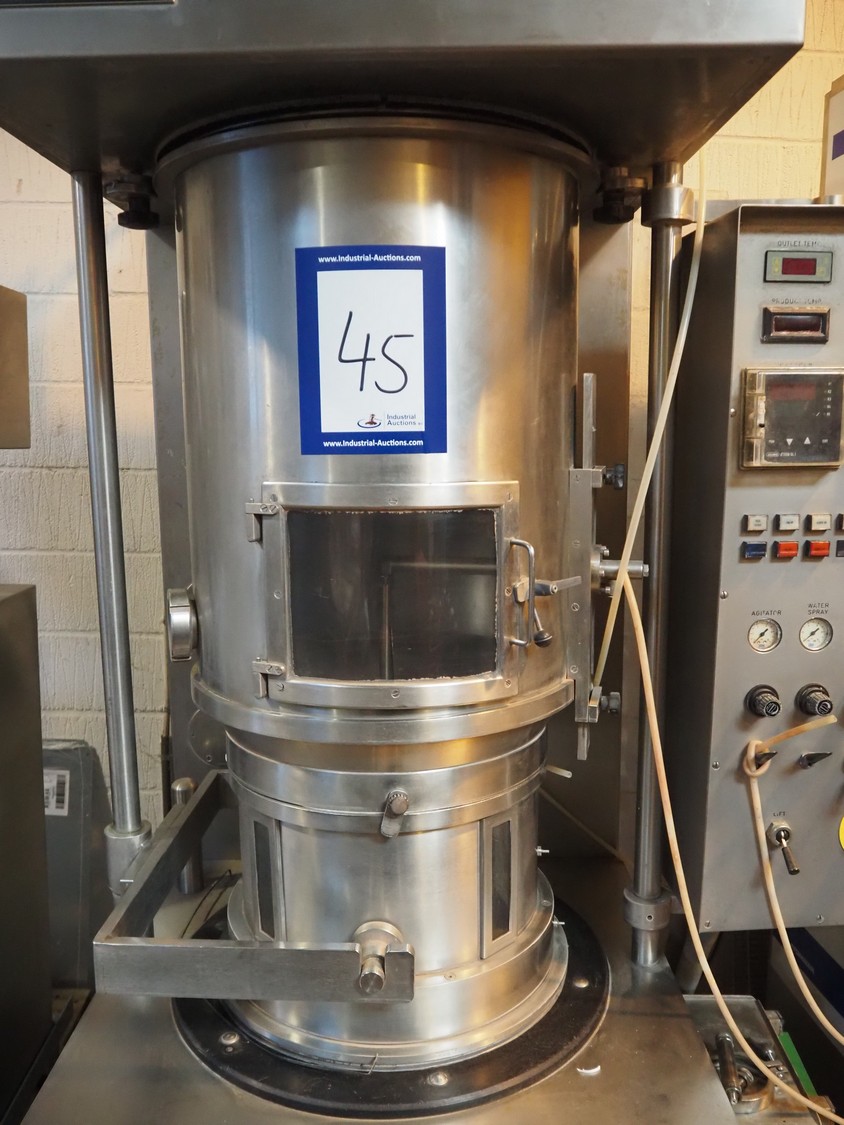 Niro coater / fluid bed, type: CC2 P/T, number: 0013, spray function 20 liter product container, dimensions: 1400 mm x 1100 mm x 2200 mm.