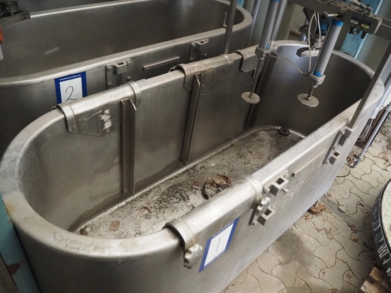 Alfa Laval double jacketed cheese tank, type: 650 L, number: 34013-04, volume tank: 650 liter, dimensions: 2600 mm x 800 mm x 2000 mm.