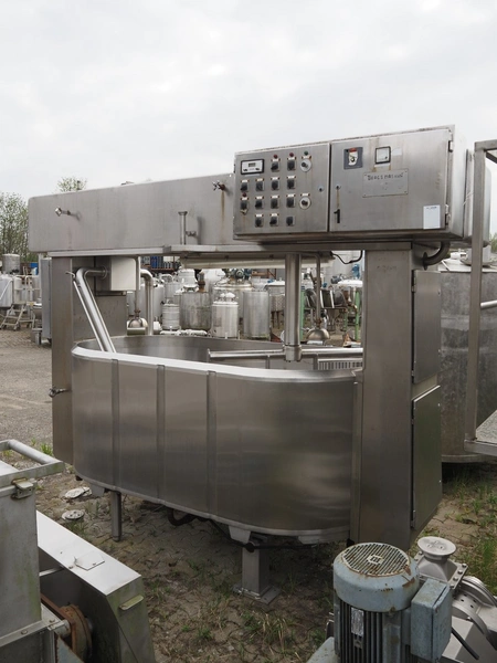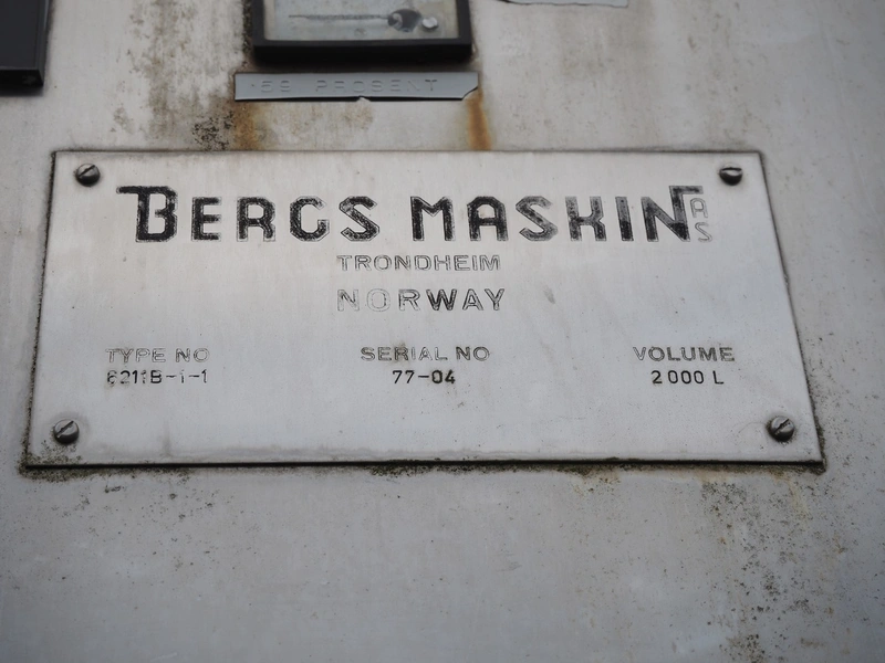 Bergs Maskin AS double jacketed s/s cheese vat with agitator, type: 6211B-1-1, serial number: 77-04, 380 V, volume: 2000 liter, dimensions: 3000 mm x 1300 mm x 2600 mm.