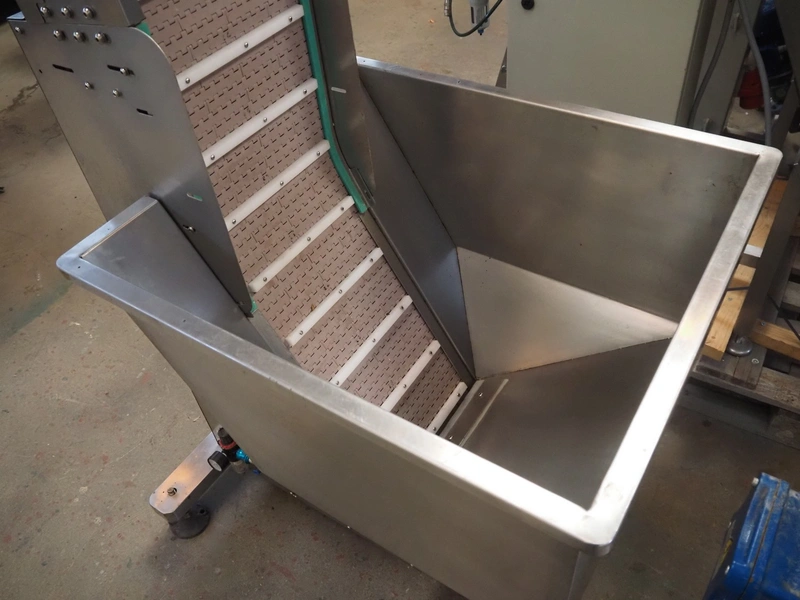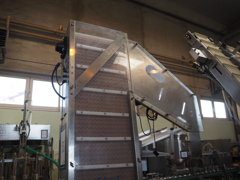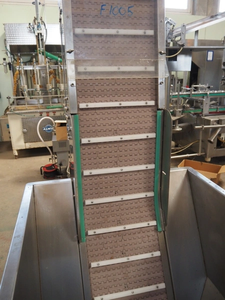 Shanghai Npack Automation Equipment CO.,LTD cap feeder, model: NP-LC, 1.6 kW, belt width: 300 mm, divider height: 15 mm, distance between dividers: 100 mm, elevating height: 2220 mm, capacity; 12000 pcs/h, total dimensions: 1000 mm x 800 mm x 2300 mm.