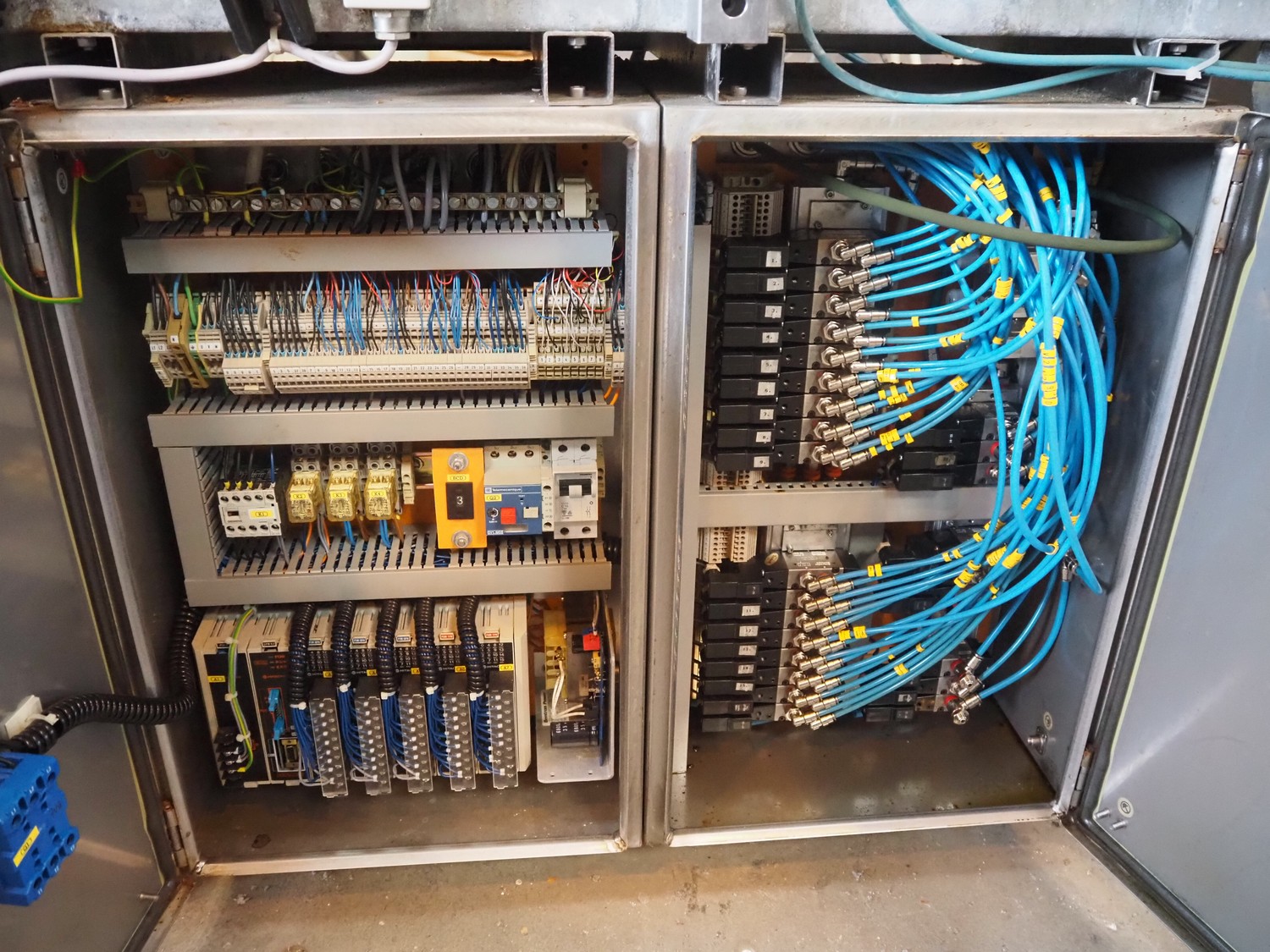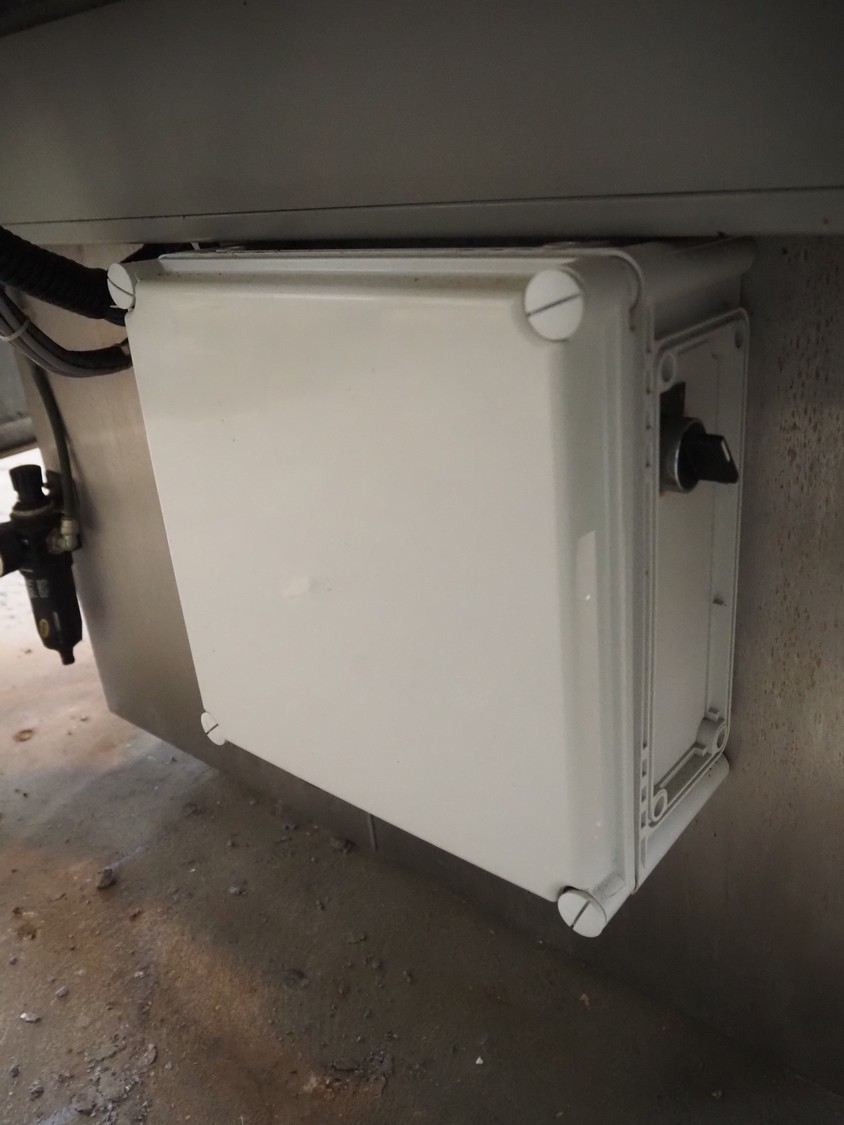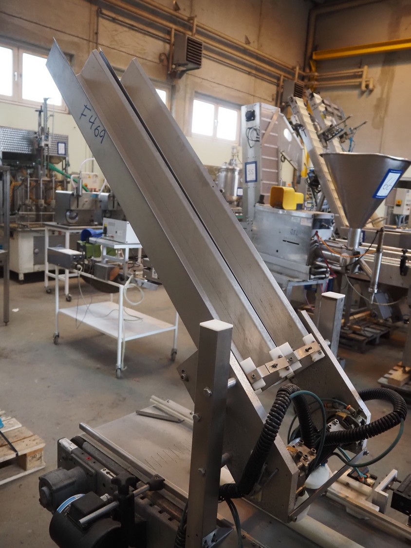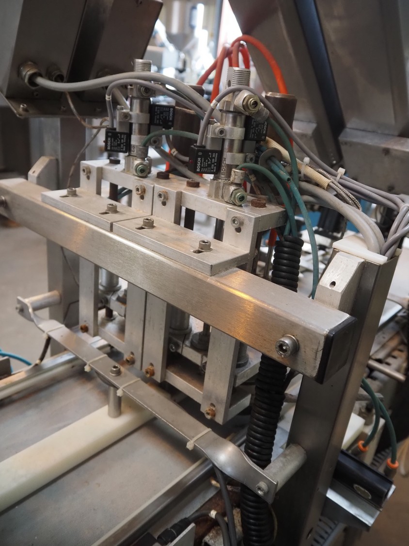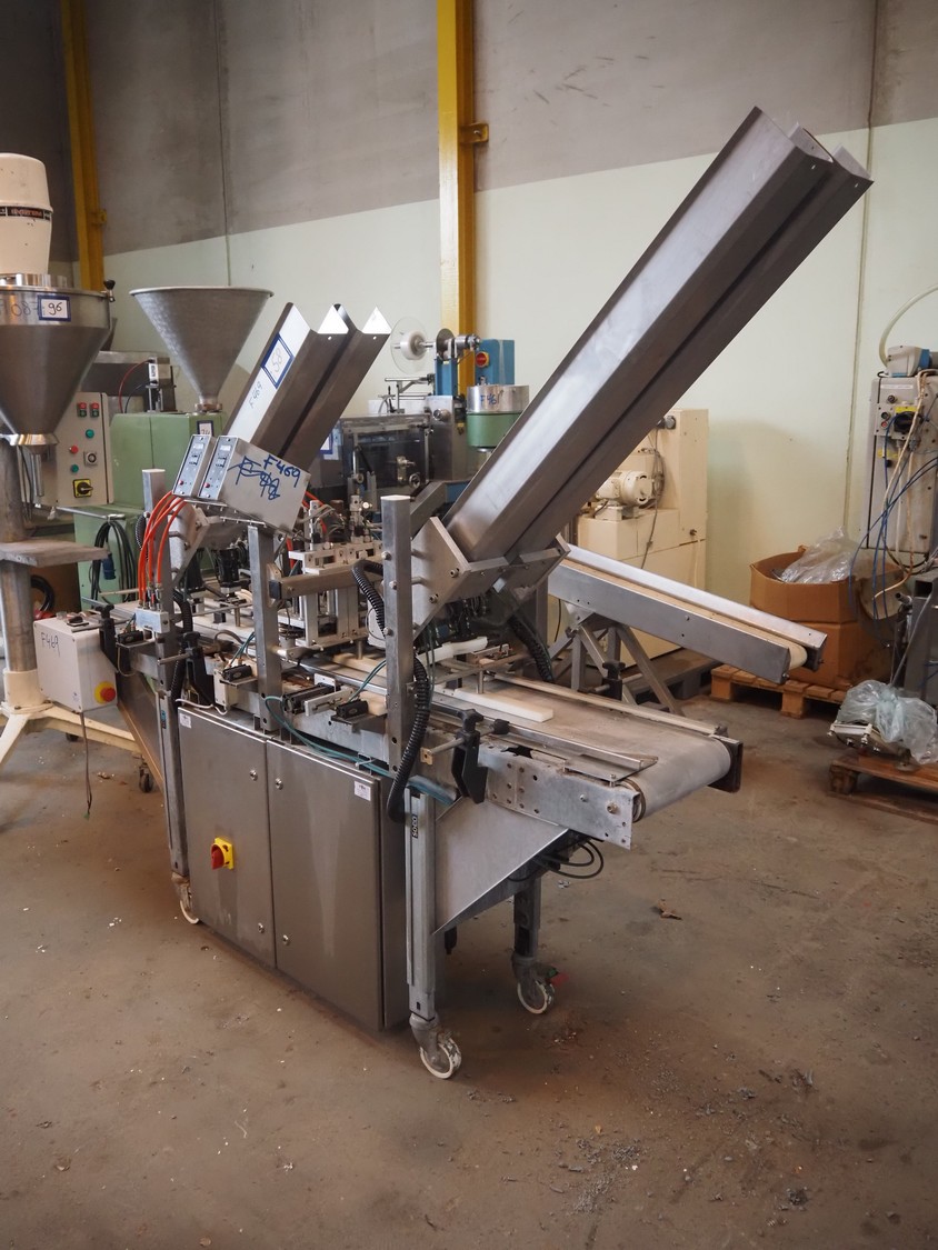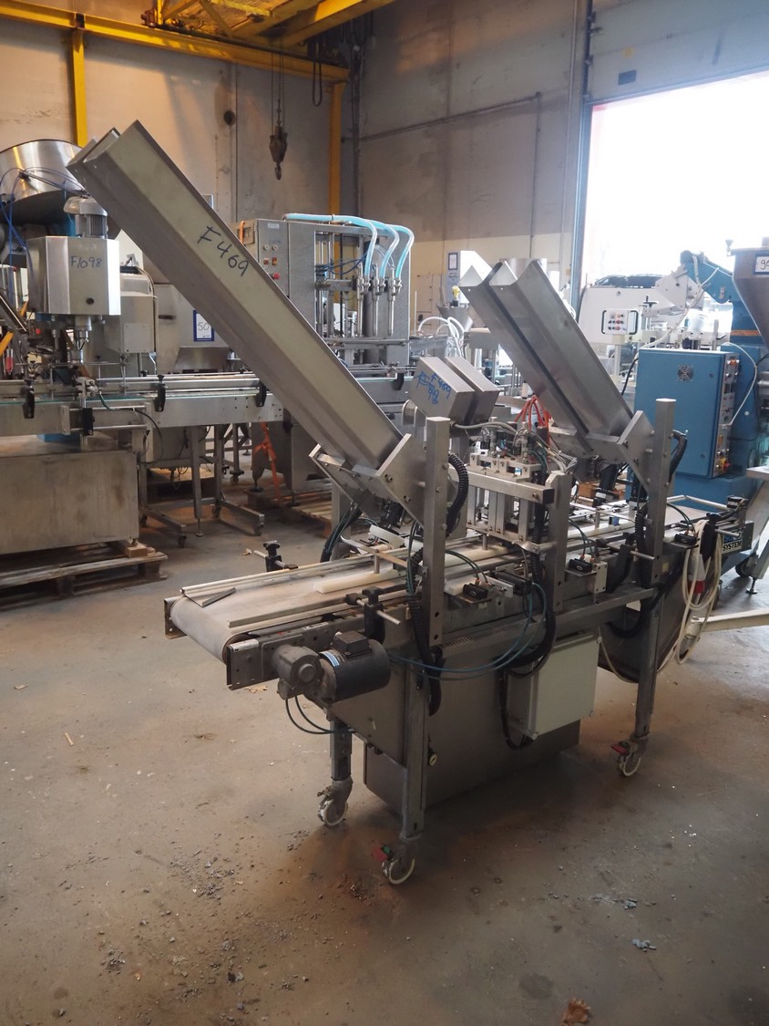 Soco System lid sealing machine, 380 V, 2 lanes, plastic belt, belt width: 280 mm, dimensions: 2050 mm x 700 mm x 1850 mm.