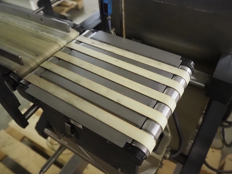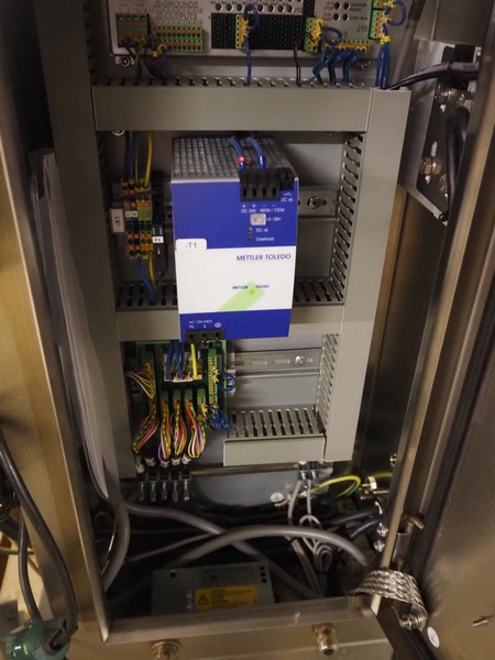Mettler-Toledo Garvens GmbH checkweigher with turning table rejector, type: XE 2, serial number: 34003884, year of construction: 2014, 100-240 V, 50-60 Hz, maximum weight: 300 gram, minimum weight: 7 gram, e=d= 0.1 gram, T= - 270 gram, plastic belt, belt width: 150 mm, dimensions checkweigher: 800 mm x 630 mm x 1420 mm, turning table rejector, diameter turning table: 600 mm, plastic belt, belt width: 150 mm, total dimensions rejector: 1140 mm x 830 mm x 880 mm.