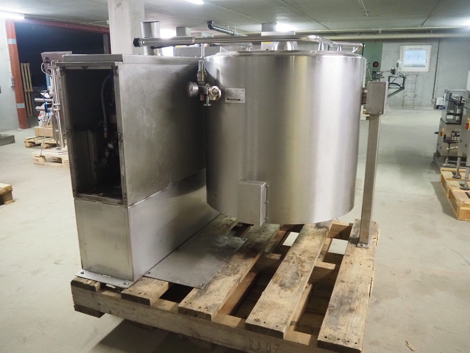 Jøni Foodline A/S cooking vessel, model: Multi-Mix Gryta, number: 011456-1073, year of construction: 2002, 400 V, 3 Ph, 50 Hz, 43.3 A, 30 kW, volume: 150 liter, steam volume: 49 liter, dimensions: 1450 mm x 1350 mm x 1500 mm.