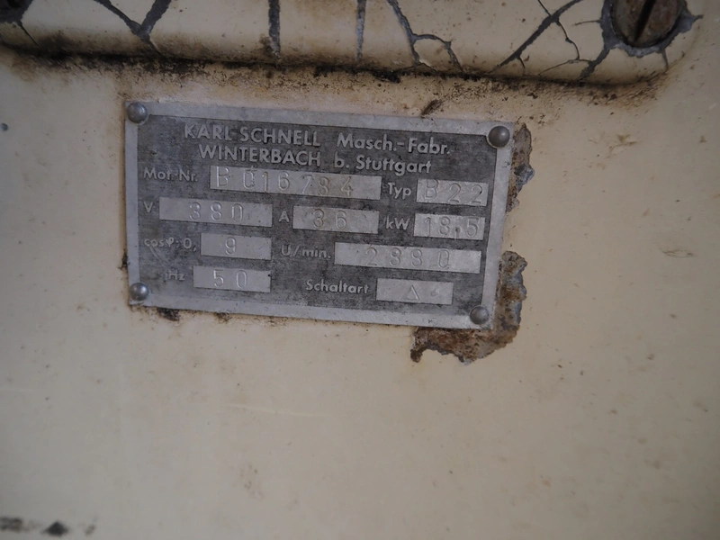 Karl Schnell mobile emulsifier, type: B22, 380 V, 50 Hz, 36 A, 18.5 kW, volume: 325 liter, dimensions: 1300 mm x 1100 mm x 1700 mm.