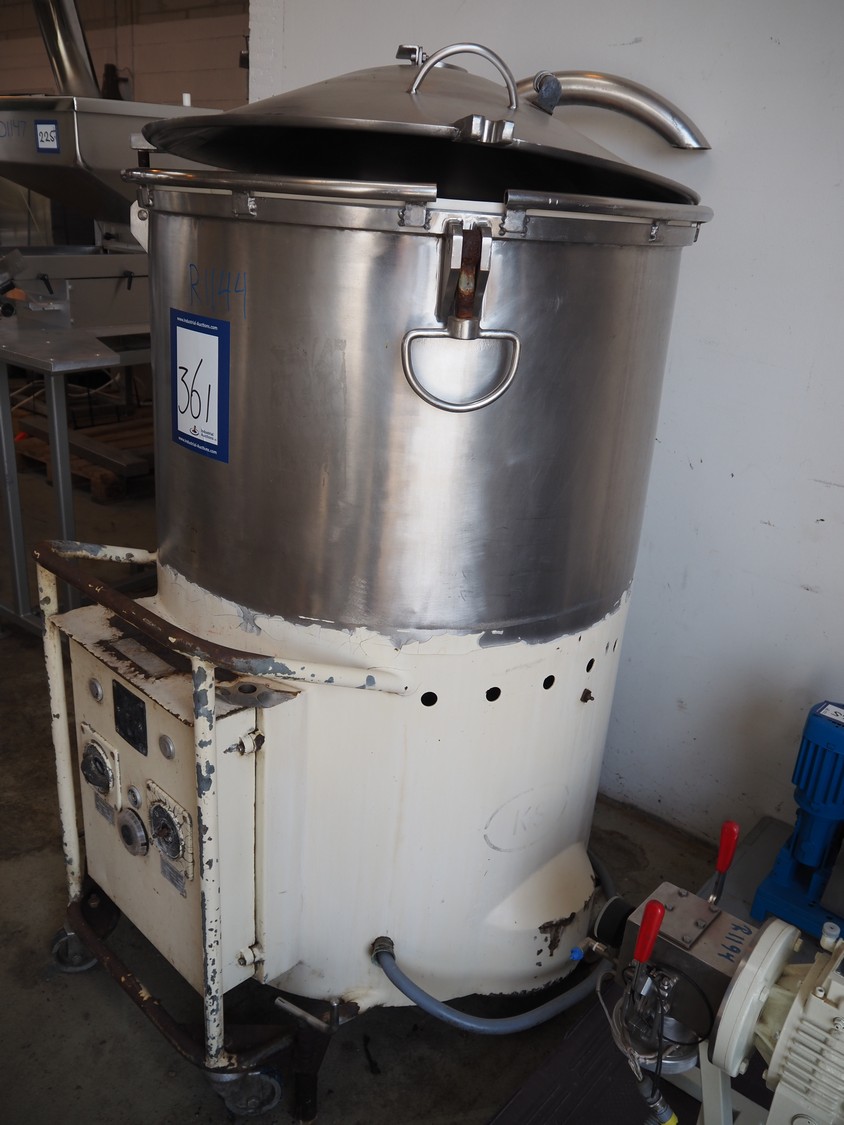 Karl Schnell mobile emulsifier, type: B22, 380 V, 50 Hz, 36 A, 18.5 kW, volume: 325 liter, dimensions: 1300 mm x 1100 mm x 1700 mm.