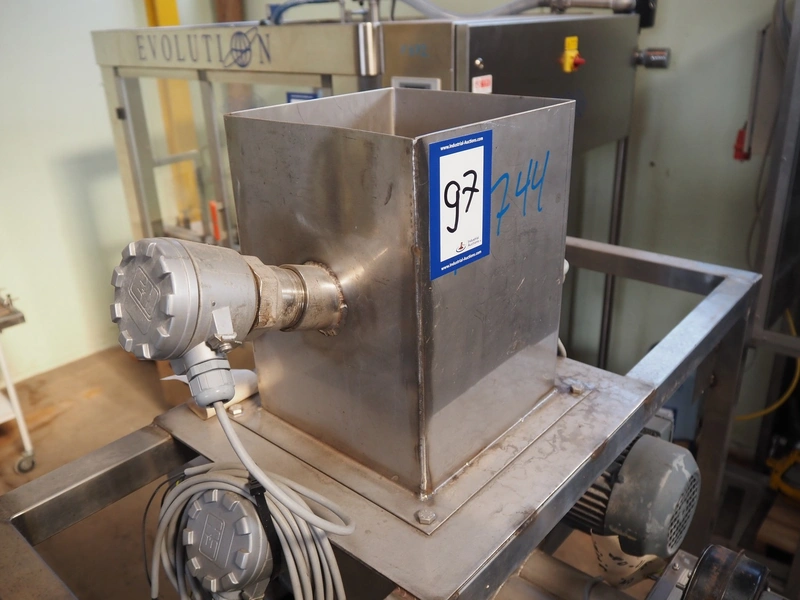 S/s volumetric feeder, 380 V, 0.75 kW, clearance: 210 mm x 220 mm, outlet dimensions: 220 mm x 80 mm, total dimensions: 1000 mm x 750 mm x 1900 mm.