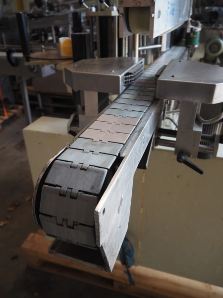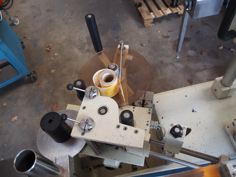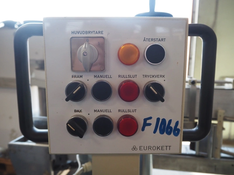 Eurokett labelling machine, 380 V, maximum label height 160 mm, plastic belt, belt width: 85 mm, total dimensions: 2000 mm x 1300 mm x 1500 mm.