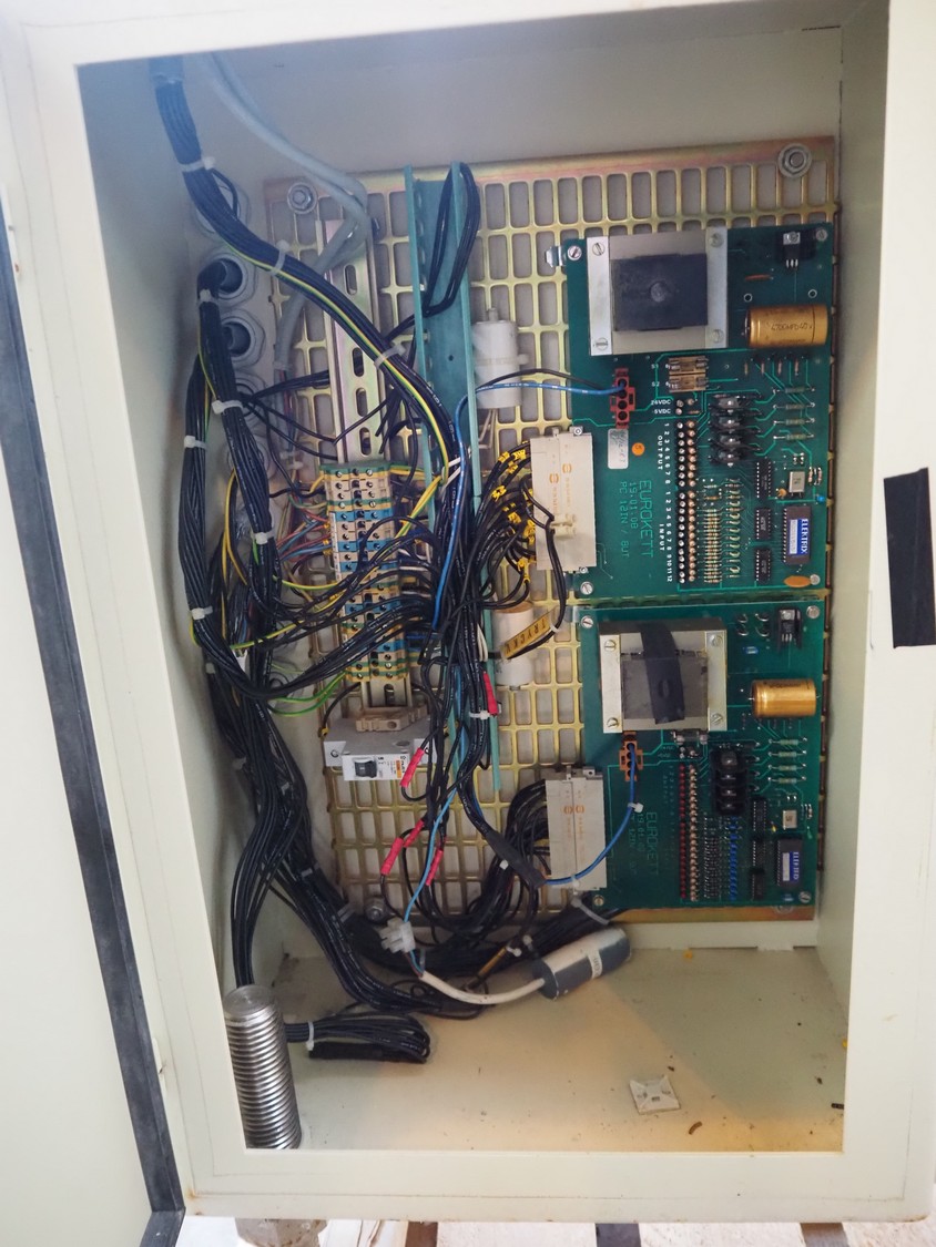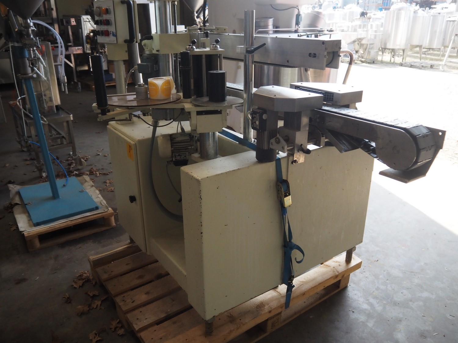 Eurokett labelling machine, 380 V, maximum label height 160 mm, plastic belt, belt width: 85 mm, total dimensions: 2000 mm x 1300 mm x 1500 mm.