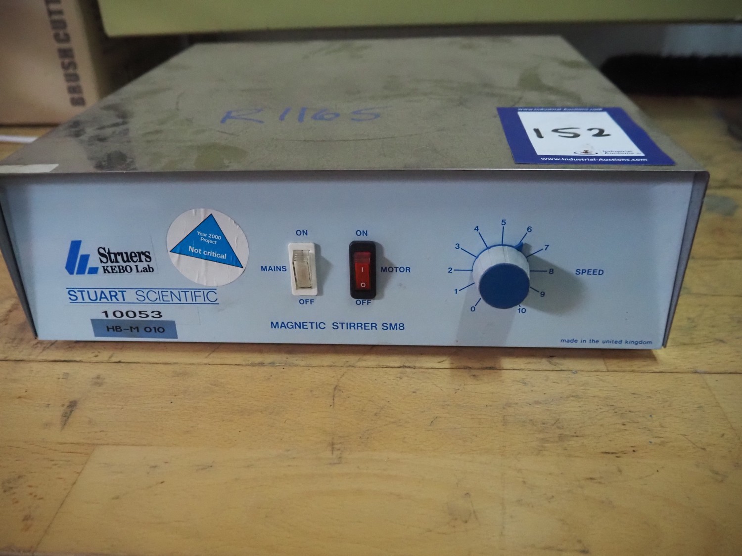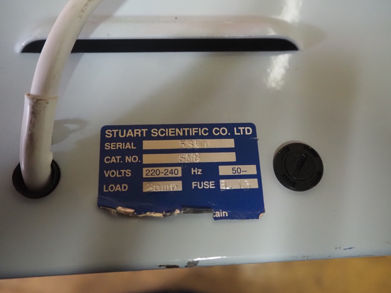 Stuart Scientific magnet stirrer, type: SM8 serial number: 5851, 220-240 V, 50 he, 3 A, variable speed 50-700 rpm, dimensions: 360 mm x 360 mm x 120 mm.