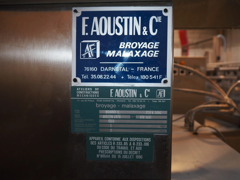 F. Aoustin & Cie laboratory mixer, type: Novimix 1L, serial number: AOUSTIN 2476, number: UTV 1091, year of construction: 1993, 220 V, 50 Hz, capacity: 1 liter, variable speed, double jacketed, dimensions: 850 mm x 700 mm x 2000 mm.