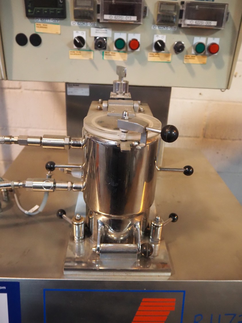 F. Aoustin & Cie laboratory mixer, type: Novimix 1L, serial number: AOUSTIN 2476, number: UTV 1091, year of construction: 1993, 220 V, 50 Hz, capacity: 1 liter, variable speed, double jacketed, dimensions: 850 mm x 700 mm x 2000 mm.