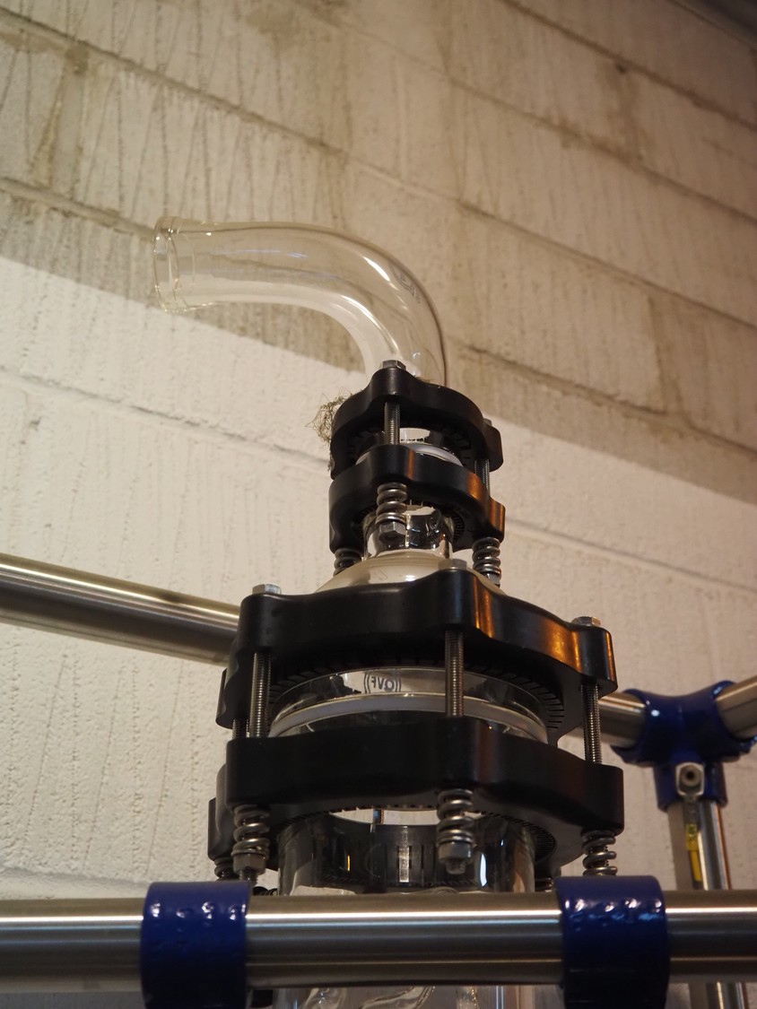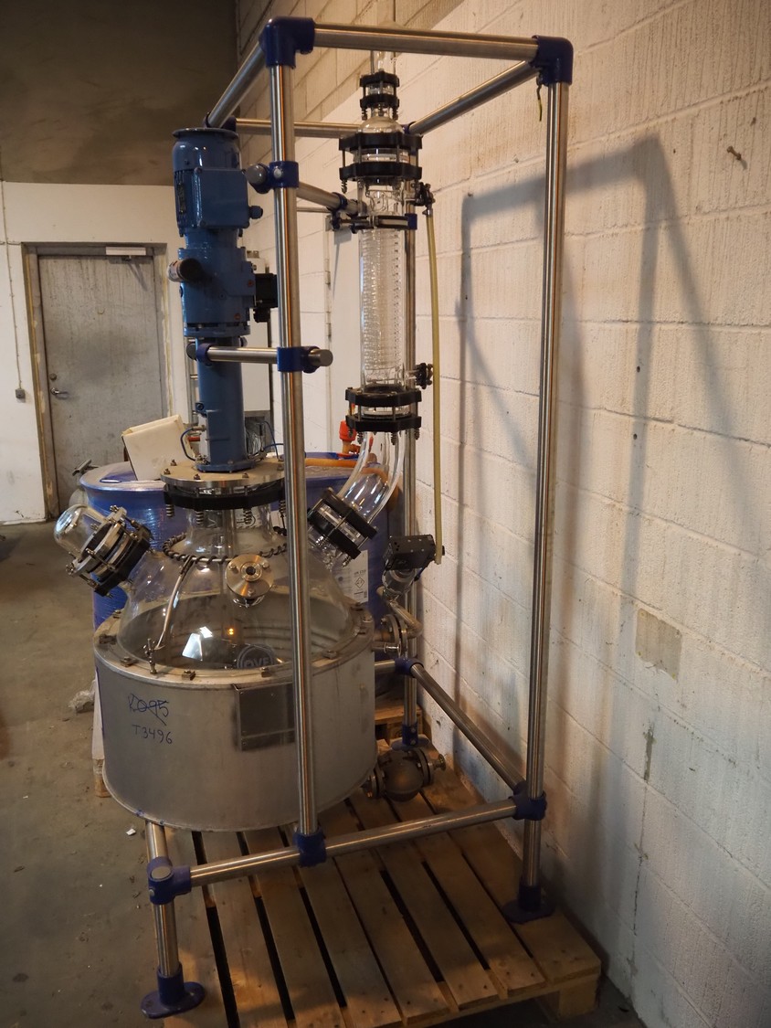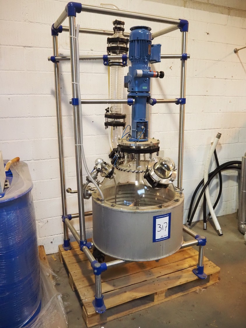 QVF Engineering GmbH glass reactor, type: BHKDE 100E-1, number: 50508101, year of construction: 2005, weight: 93.5 kg, spherical, variable speed, clearance: Ø 600 mm, dimensions: 730 mm x 730 mm x 1935 mm.