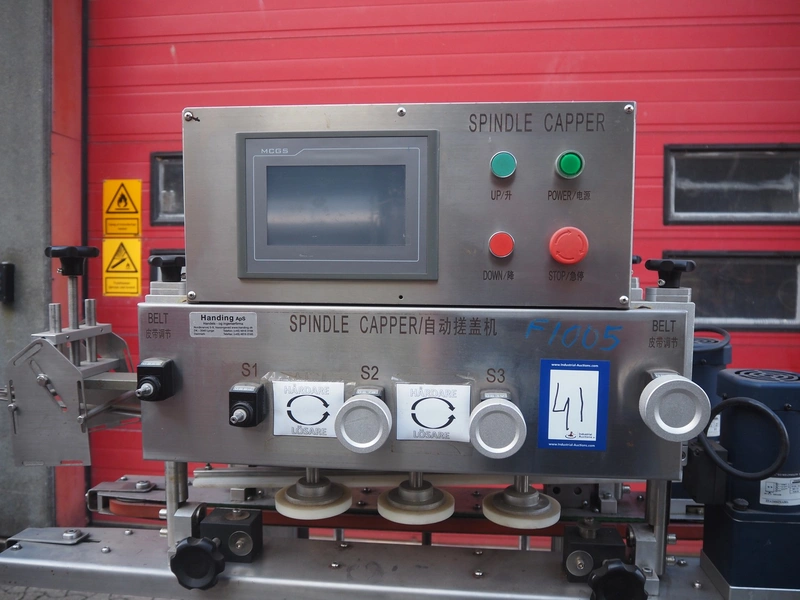 Shanghai Npack Automation Equipment CO.,LTD spindle capping machine, model: NP-LC, 1.6 kW, working width: 100 mm, 6 stamps, stamp diameter: Ø 100 mm, total dimensions: 1200 mm x 800 mm x 1750 mm.