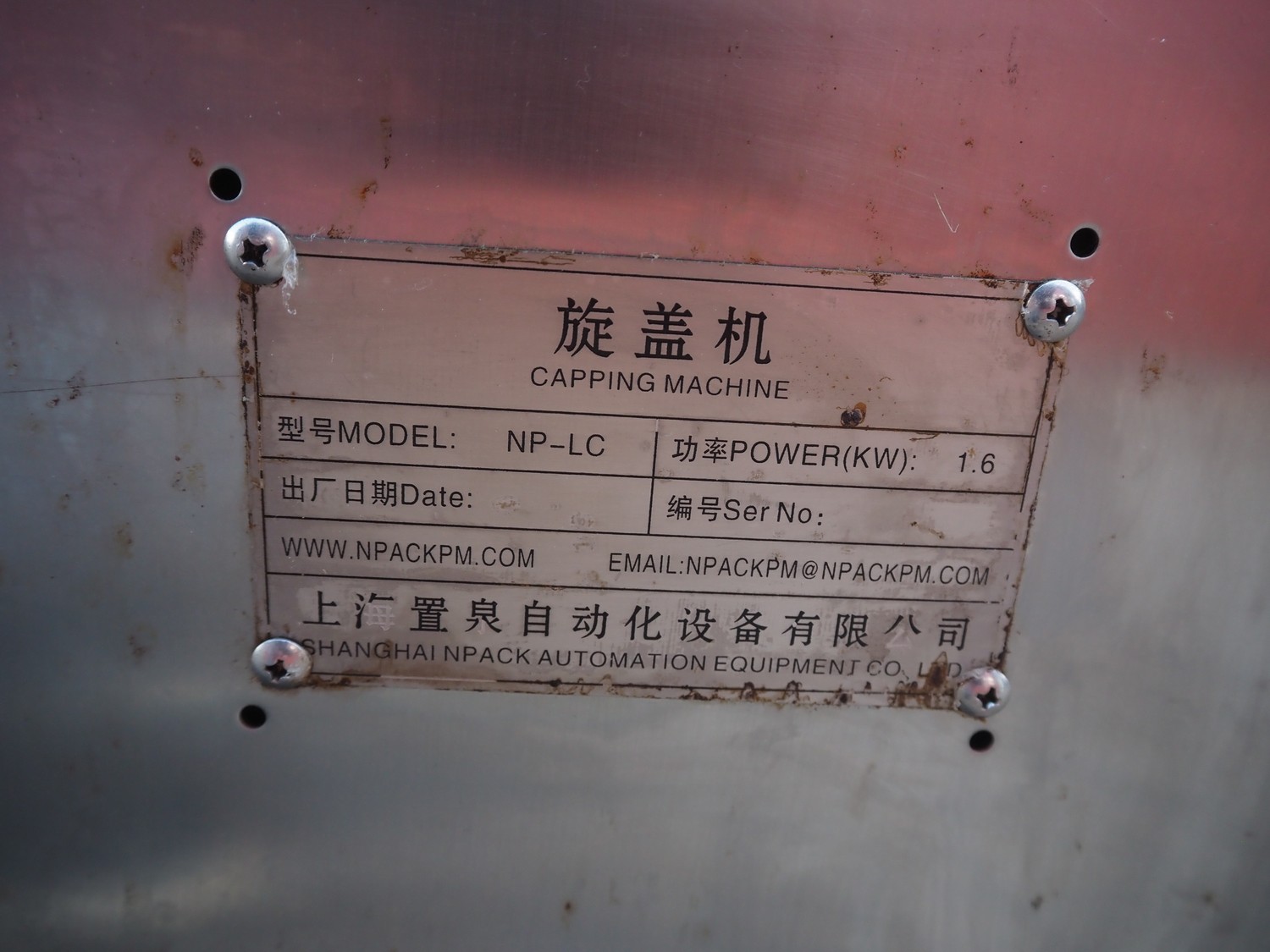 Shanghai Npack Automation Equipment CO.,LTD spindle capping machine, model: NP-LC, 1.6 kW, working width: 100 mm, 6 stamps, stamp diameter: Ø 100 mm, total dimensions: 1200 mm x 800 mm x 1750 mm.