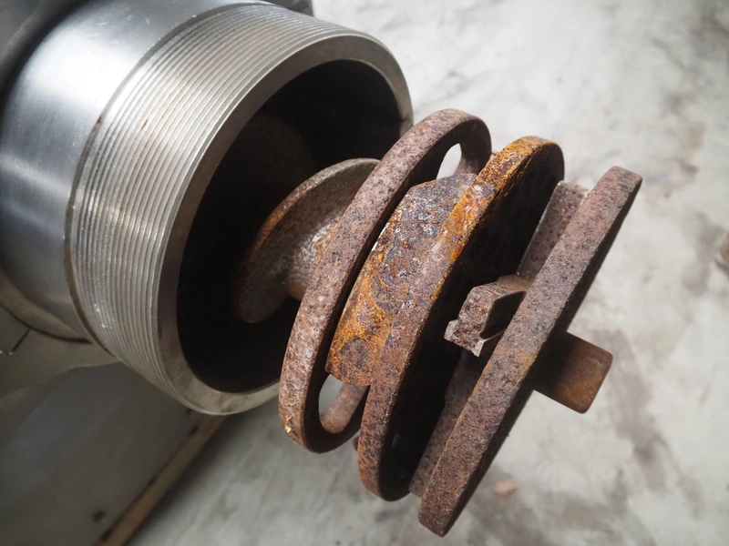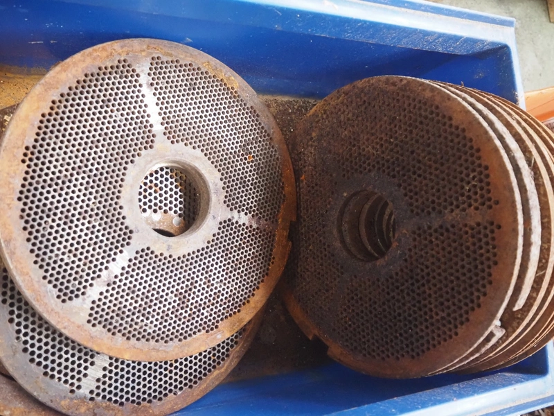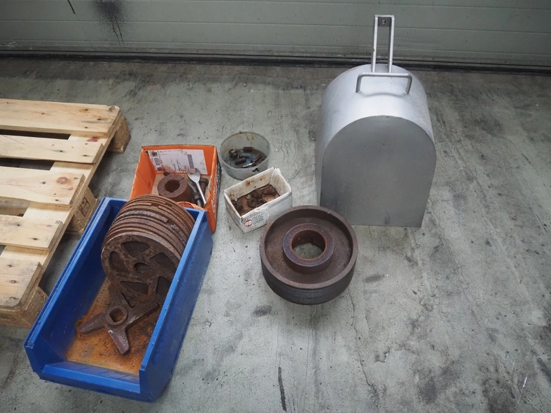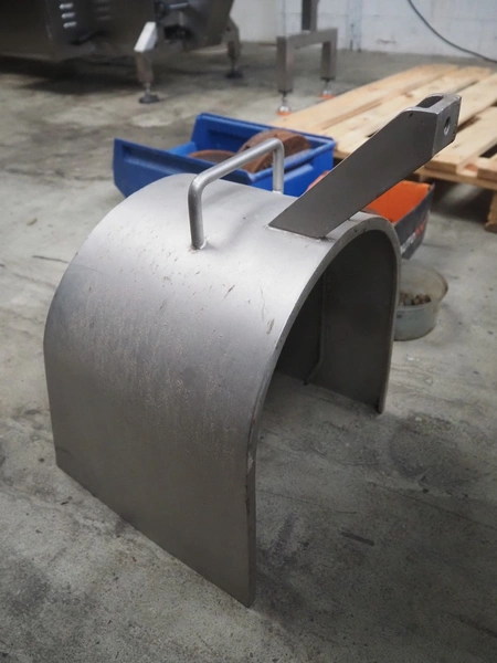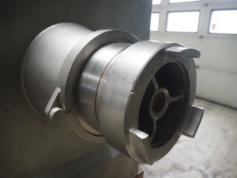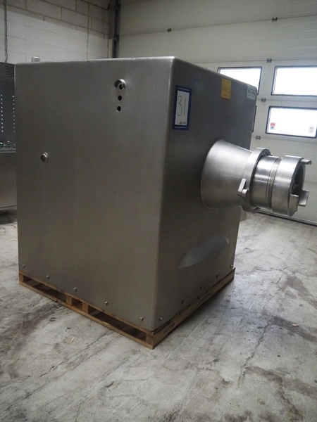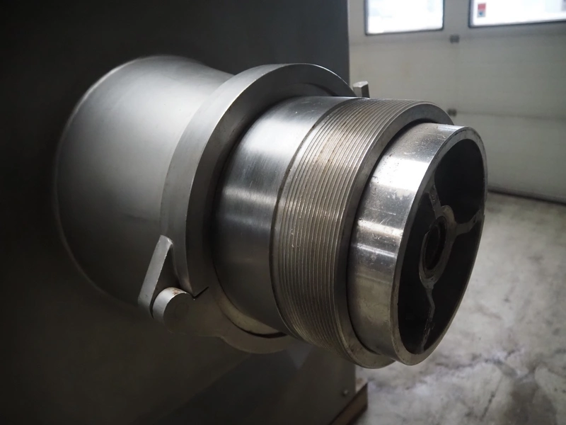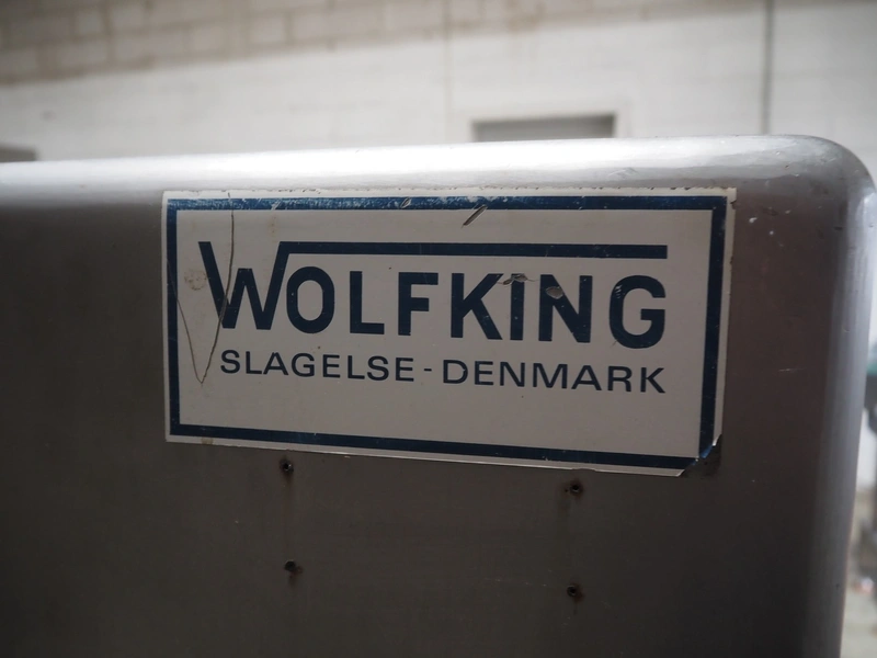 Wolfking s/s grinder, steel screw and plates, plate dimensions: approximately 246 mm, total dimensions: 1700 mm x 150 mm x 1470 mm. Including extra parts. Needs maintenance, technical condition unknown.