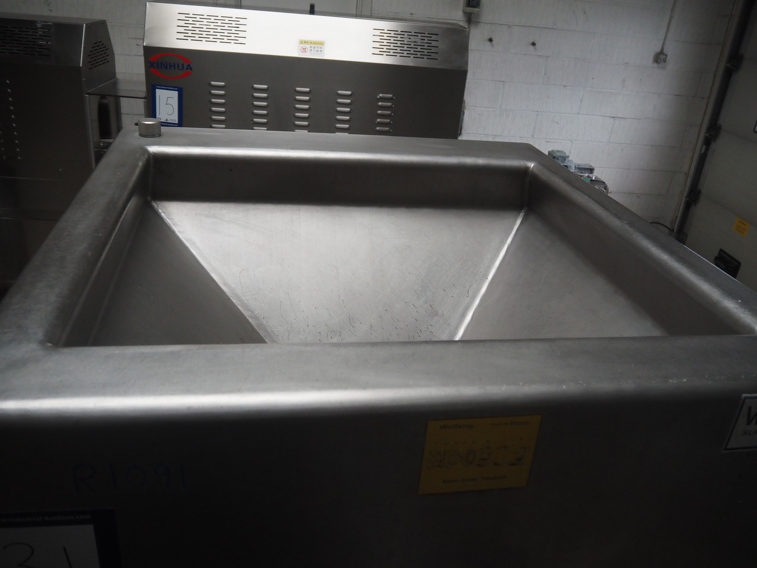 Wolfking s/s grinder, steel screw and plates, plate dimensions: approximately 246 mm, total dimensions: 1700 mm x 150 mm x 1470 mm. Including extra parts. Needs maintenance, technical condition unknown.