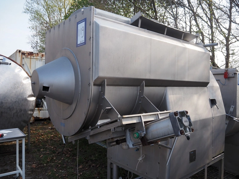 Wolfking s/s ribbon mixer, serial number: 3031802, year of construction: 2003, 380 V, capacity: 1000 liter, dimensions: 2450 mm x 1700 mm x 2400 mm.