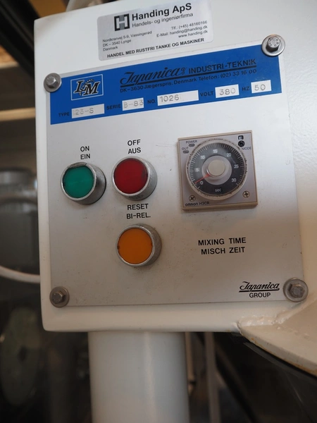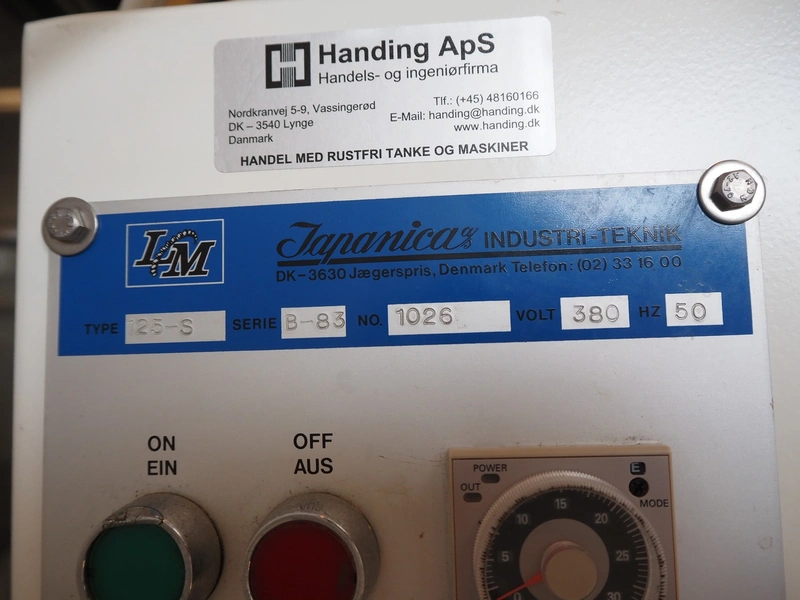 Japanica A/S rapid cone mixer, type: 125-S, serie: B-83, number: 1026, 380 V, 50 Hz, dimensions: 1250 mm x 1000 mm x 1950 mm.
