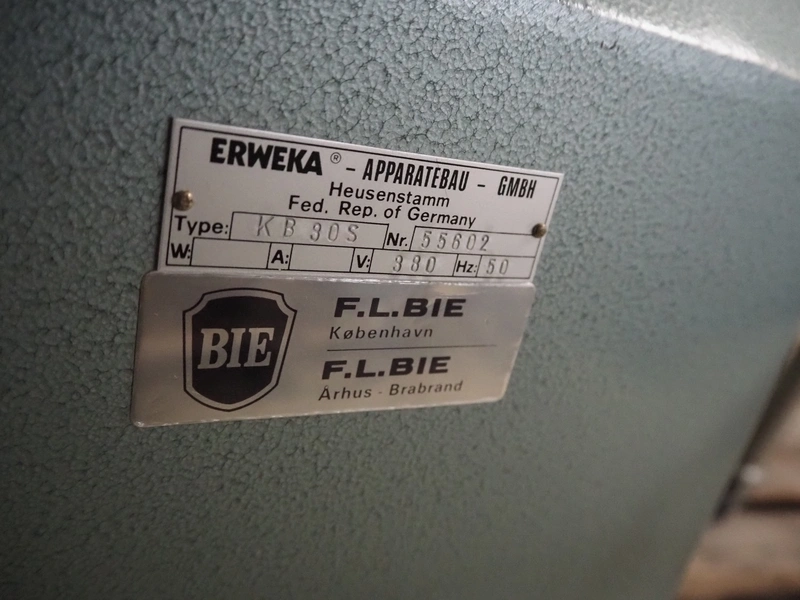 Erweka mobile cube mixer, type: KB 30S, number: 55602, 380 V, 50 Hz, volume: 25 liter, dimensions: 800 mm x 500 mm x 1300 mm.
