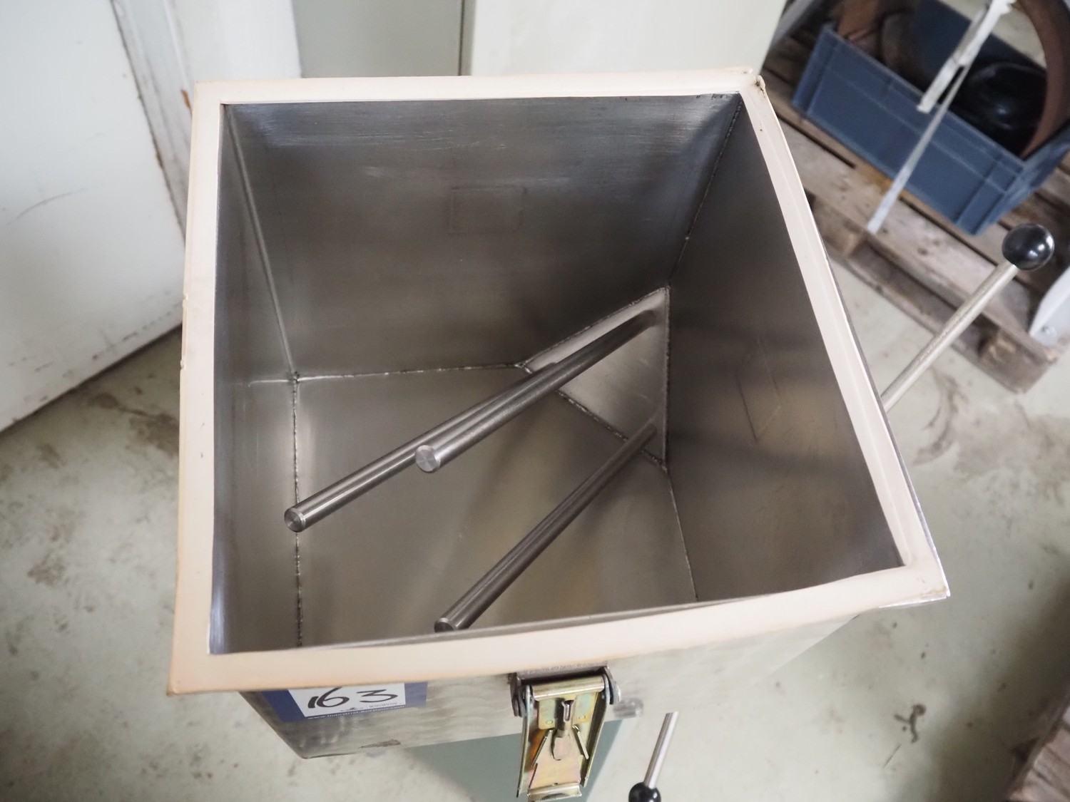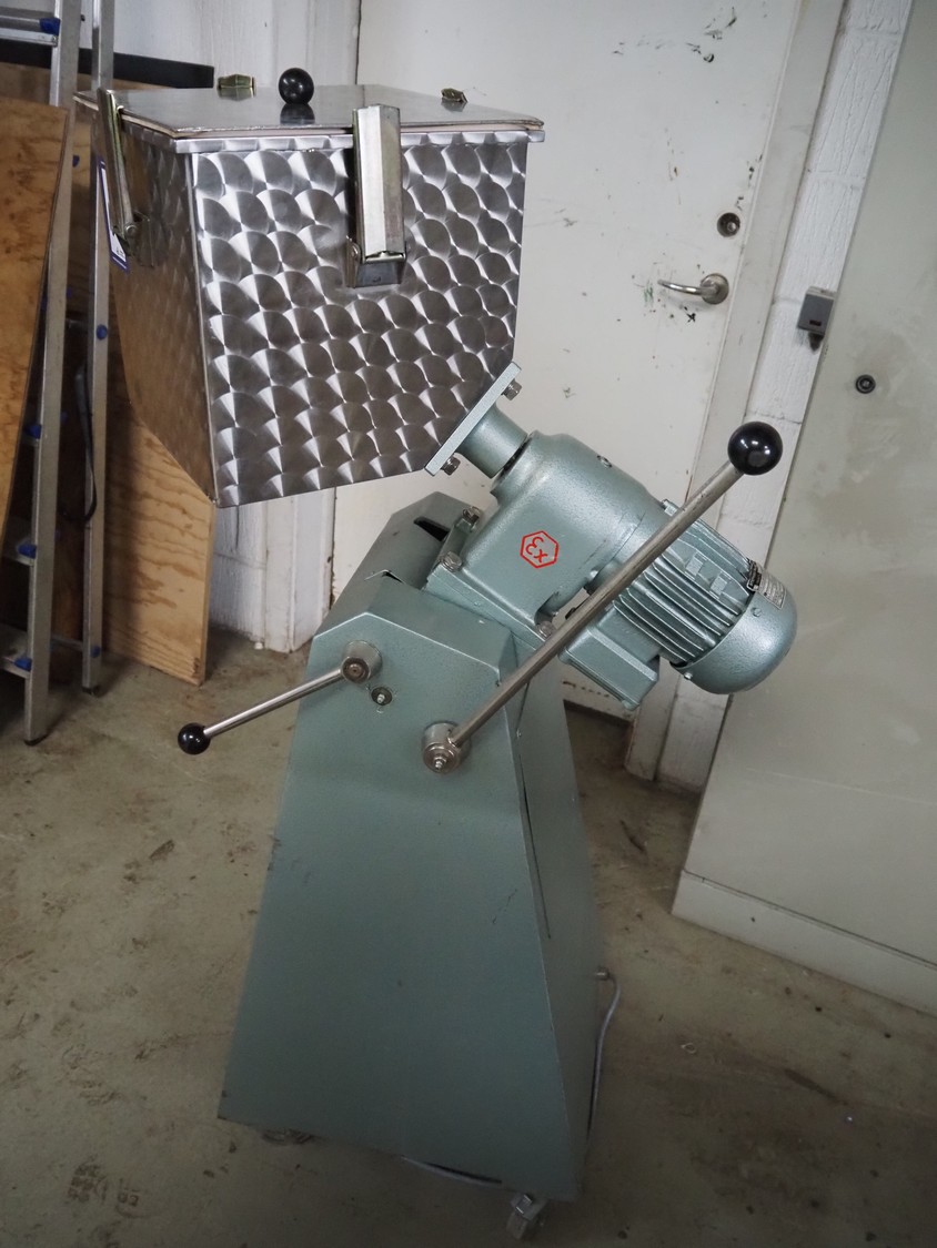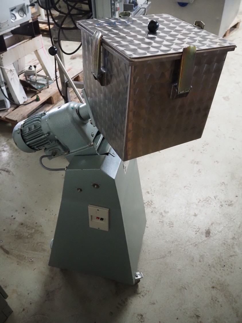 Erweka mobile cube mixer, type: KB 30S, number: 55602, 380 V, 50 Hz, volume: 25 liter, dimensions: 800 mm x 500 mm x 1300 mm.