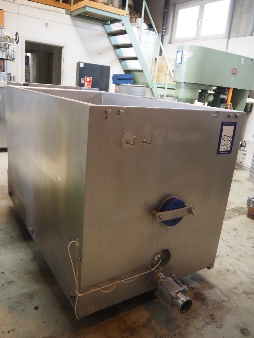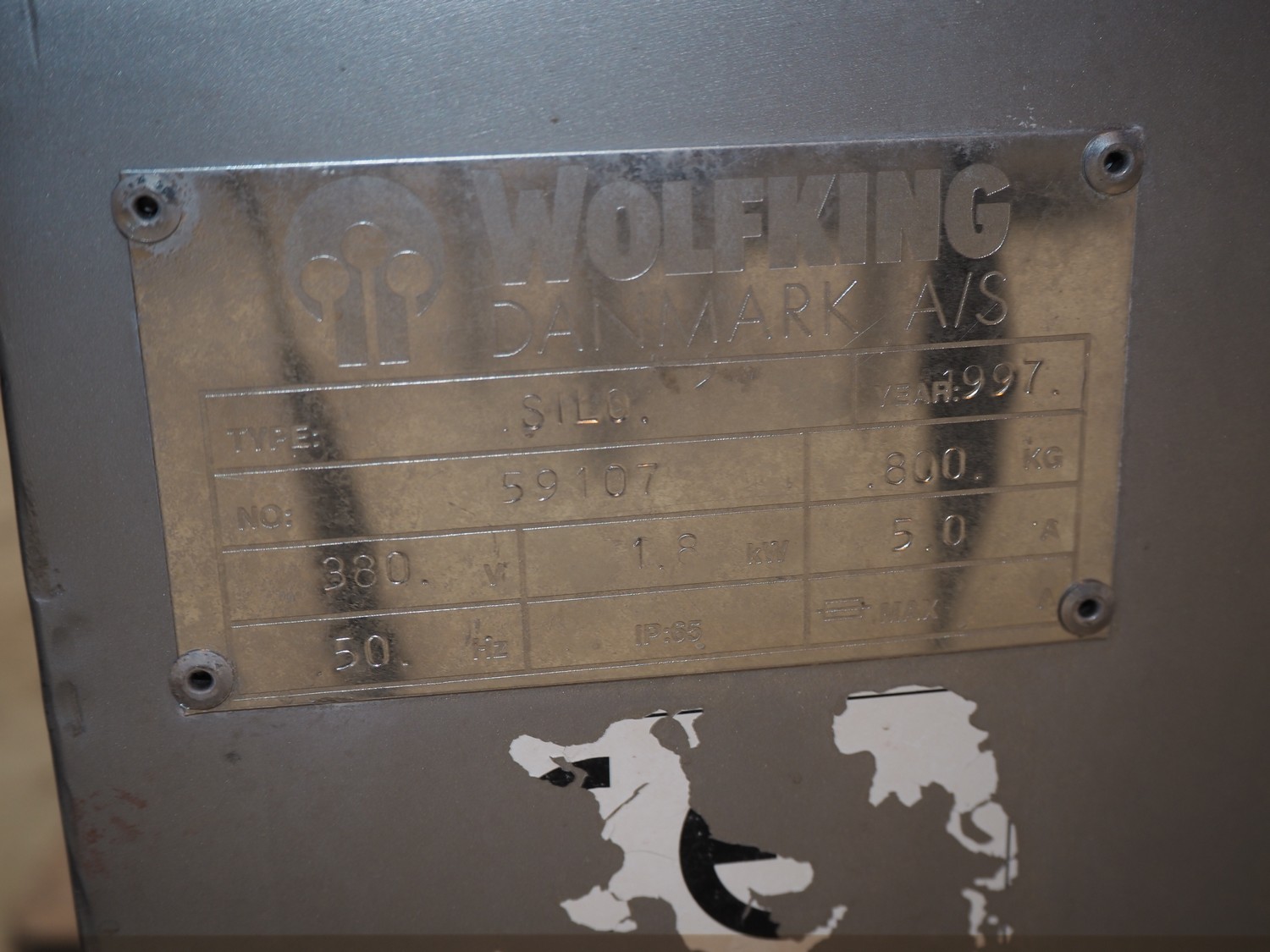 Wolfking mixer, type: SILO, number: 59107, year of construction: 1997, 380 V, 50 Hz, 5.0 A, 1.8 kW, weight: 800 kg, volume: 1500 liter, total dimensions: 2600 mm x 1200 mm x 1430 mm.