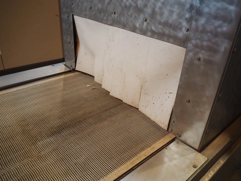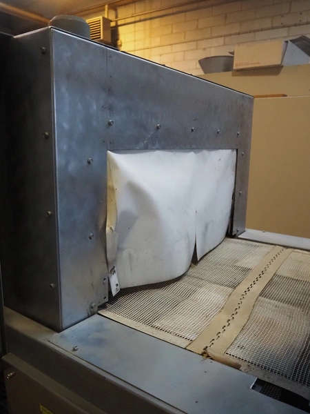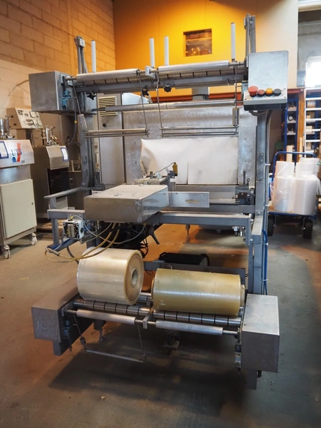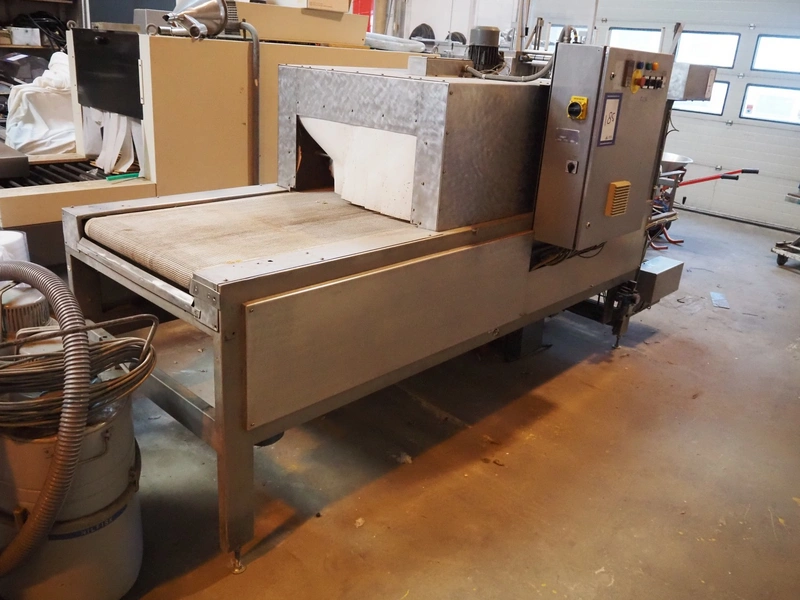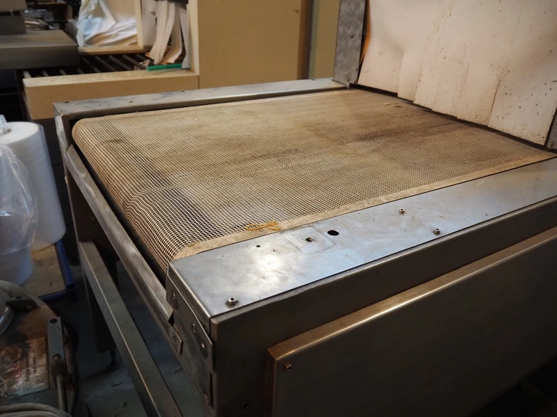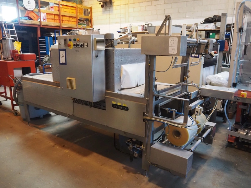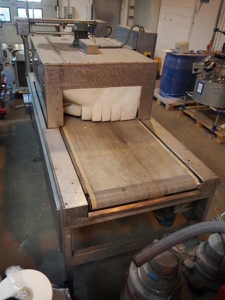 Österbergs shrink packaging machine, number: 6661, 380 V, 11 kW, Teflon belt, belt width: 700 mm, clearance: 670 mm x 320 mm, total dimensions: 3450 mm x 1400 mm x 1800 mm.
