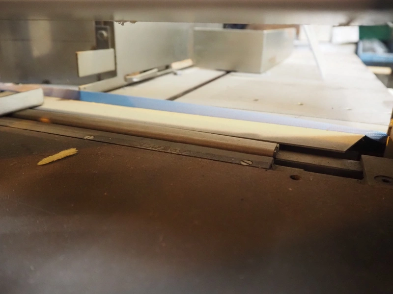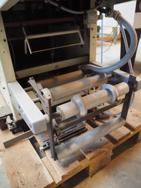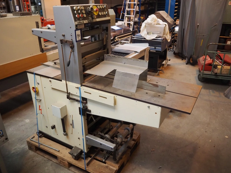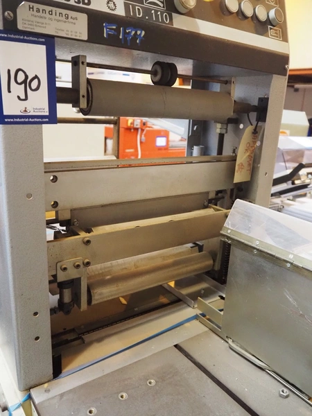 Sollas SB stretch film packaging machine, type: SB 250, serial number: 21-7, 220-380 V, 600 W, foot control, working width: 270 mm, total dimensions: 1700 mm x 650 mm x 1550 mm.